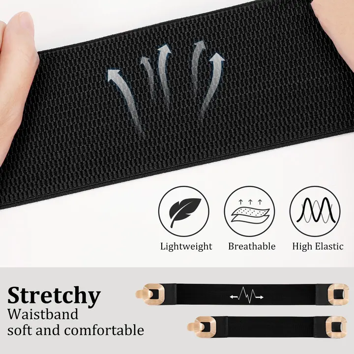·Humanised Design --- JASGOOD Women's Wide Elastic Belt is made of high elastic fibre fabric, The 3" wide elastic is very generous and comfortable, even when sitting down and doesn't feel like it's cutting you in half.