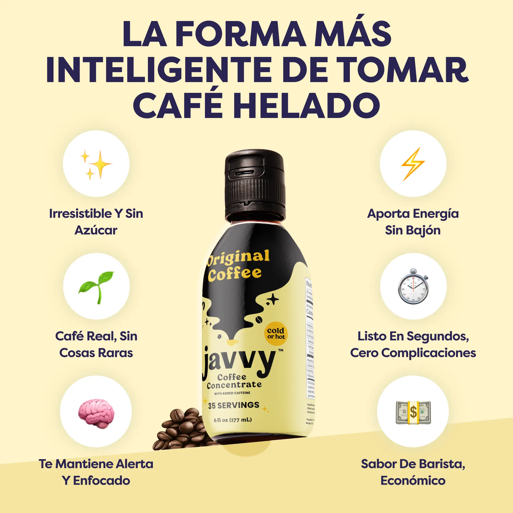 🌟 ¡ADOPTA UNA NUEVA EXPERIENCIA DE CAFÉ! – Descubre Javvy, donde los ricos sabores del café arábica de especialidad se capturan expertamente en una botella de vidrio para ofrecerte una experiencia deliciosa y constante en cada taza. Sumérgete en la verdadera esencia del café recién preparado con cada sorbo, ya sea caliente o frío. Di adiós al amargor y al regusto ácido, y disfruta de notas suaves y clásicas de café.