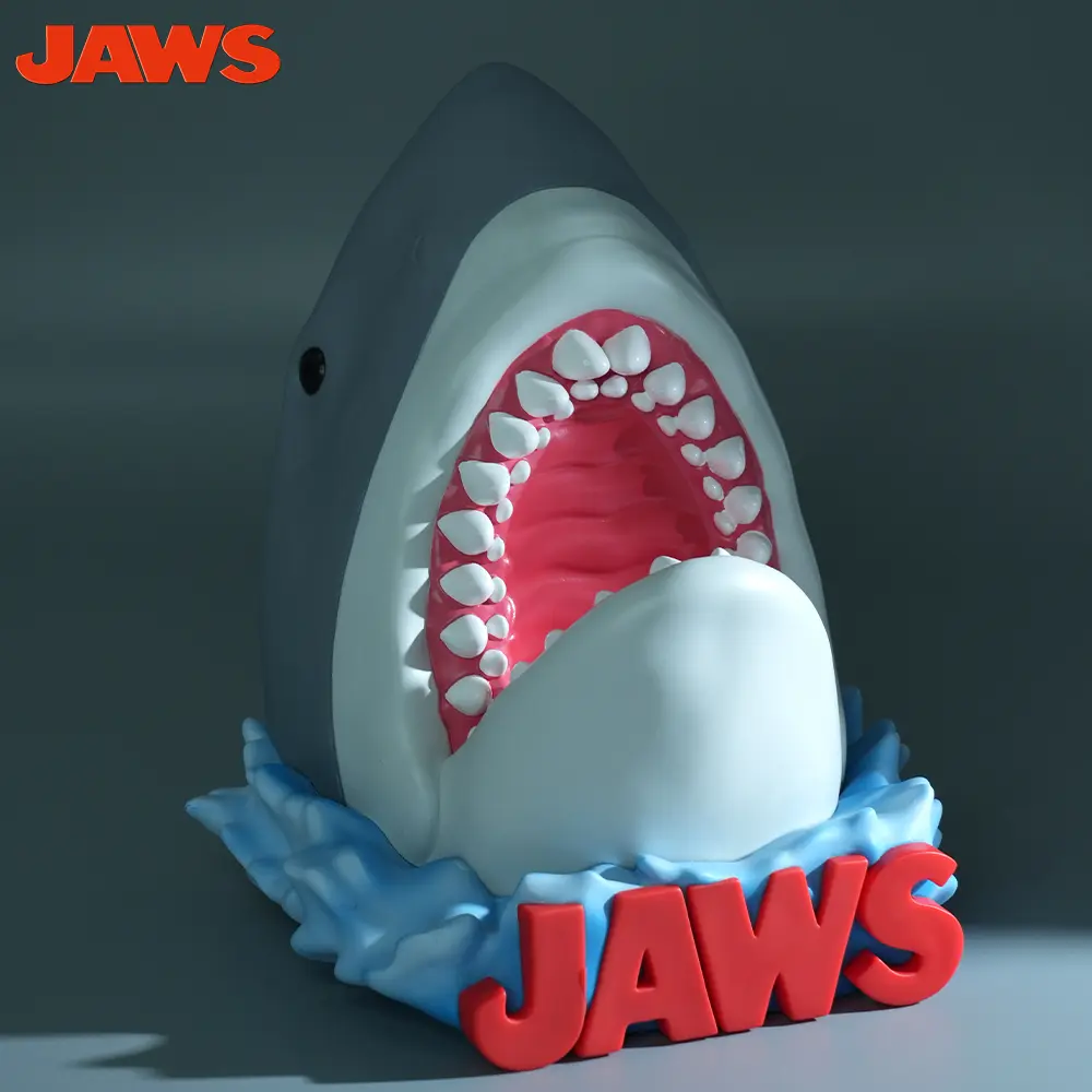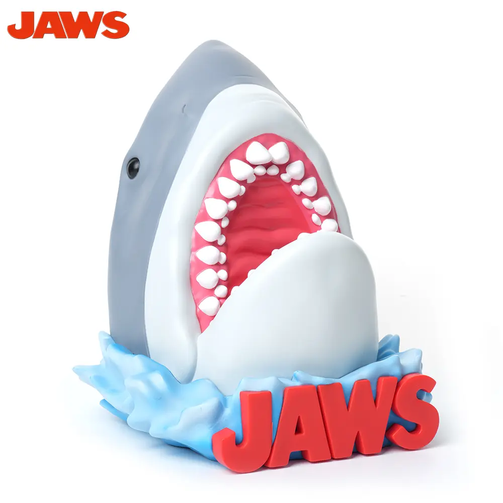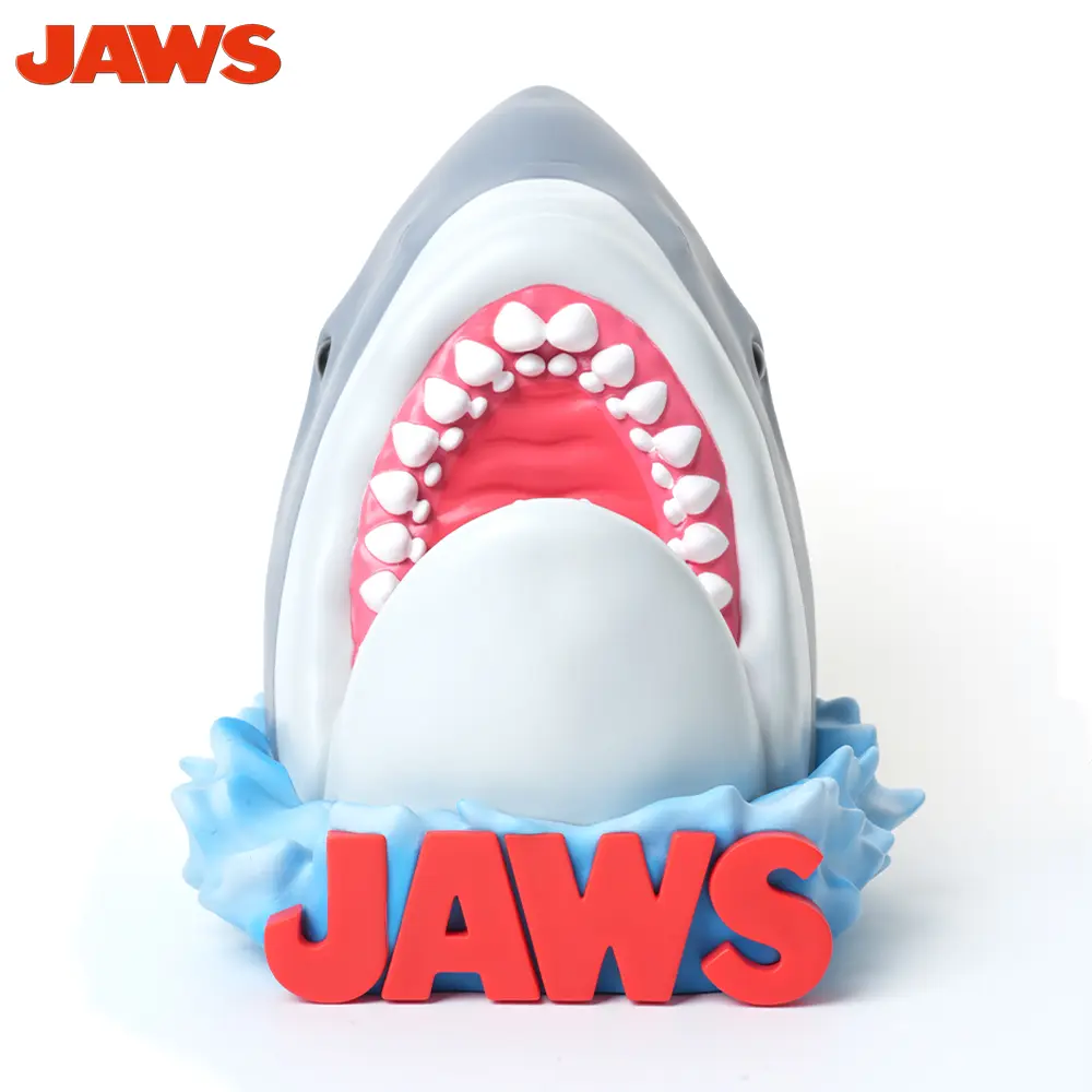 Inspired by the iconic 1975 film JAWS, this great white shark money bank is a must-have for horror movie fans and collectors of classic film memorabilia.