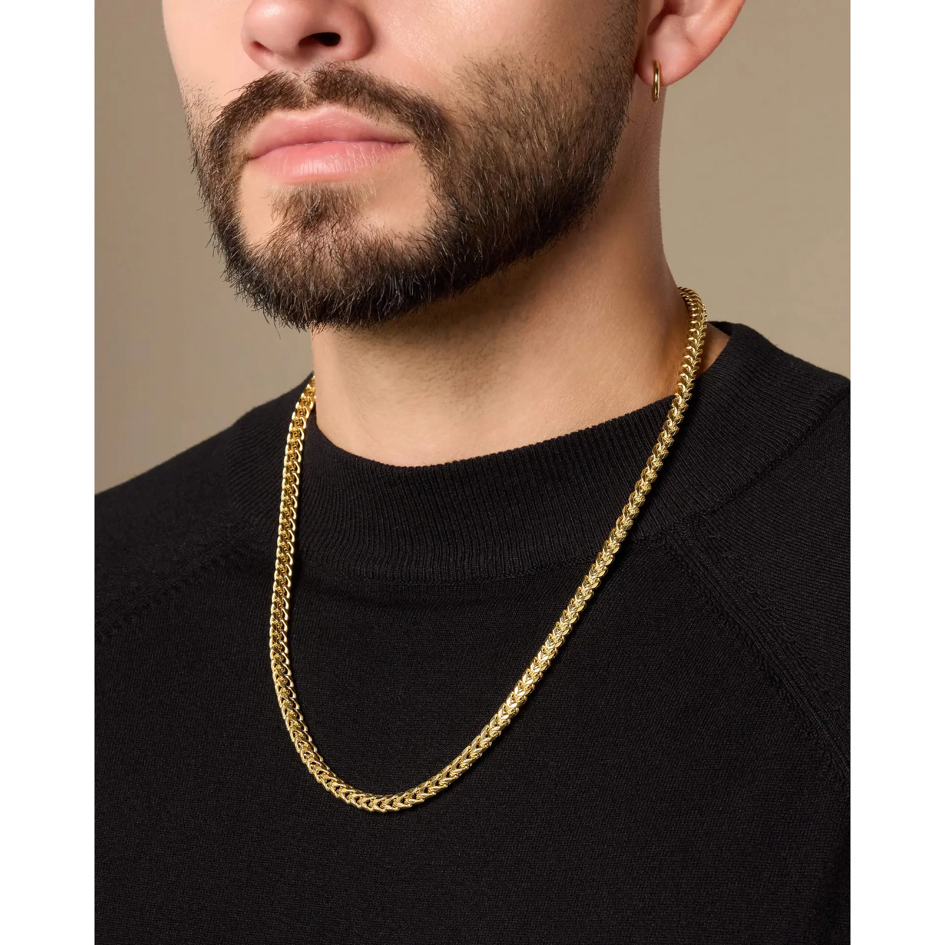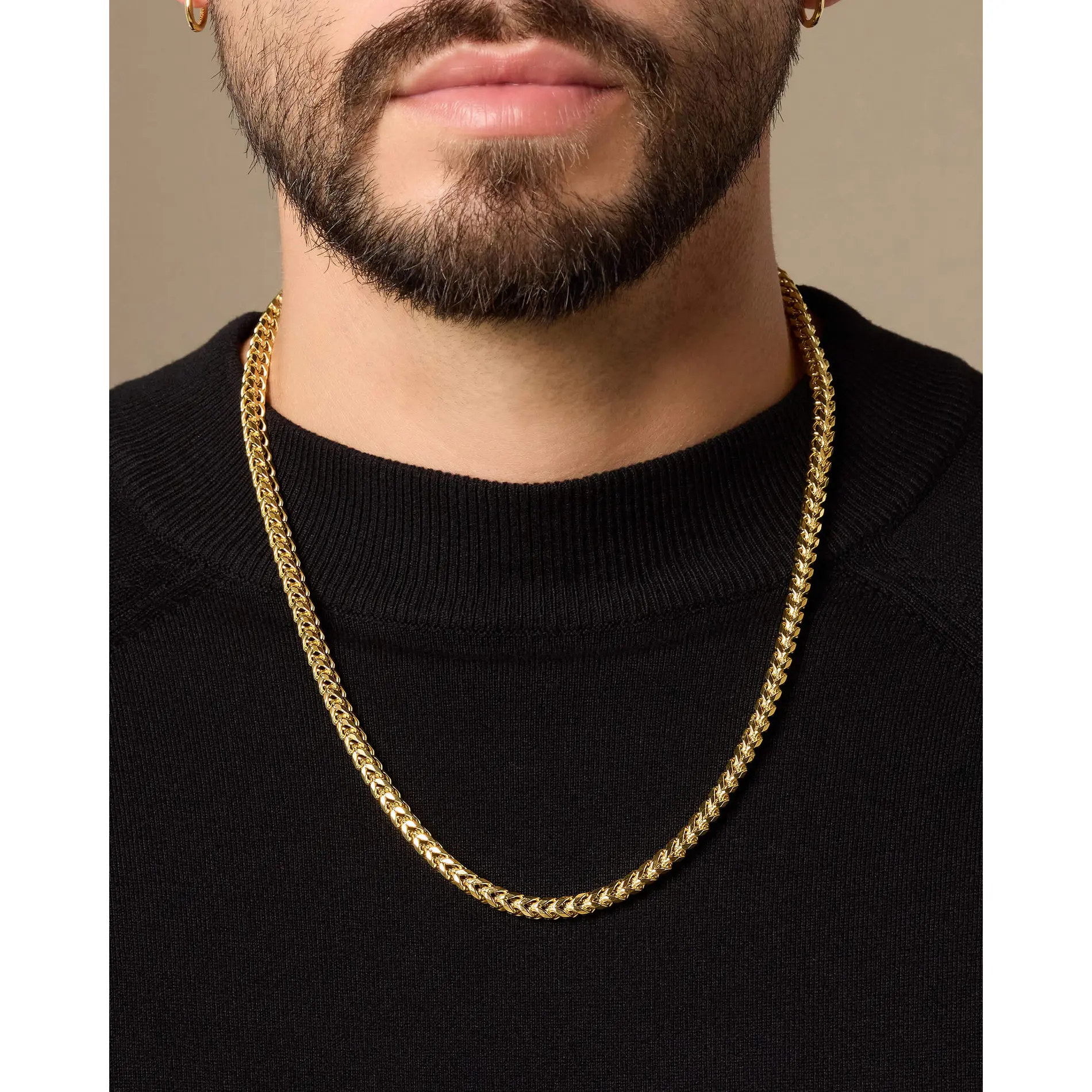 Perfect for layering or wearing solo. The Franco Chain 5mm in gold is a versatile accessory that adds a touch of elegance to any outfit.