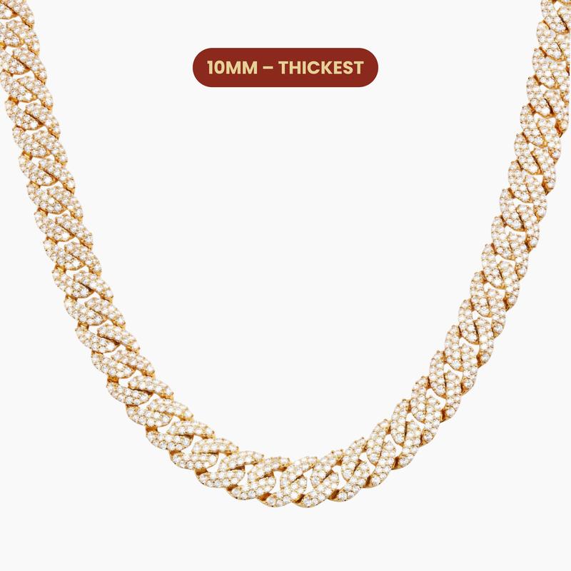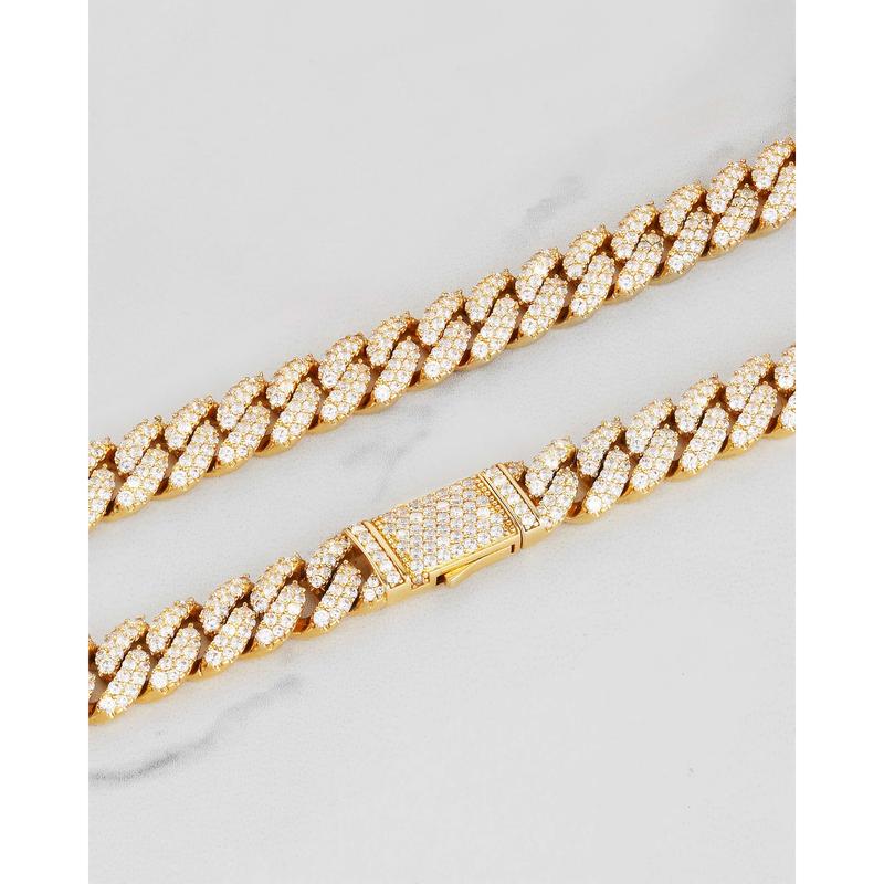 ·Key Features: 10mm gold Iced Out Cuban Link Chain Pavé diamond simulants Secure box clasp