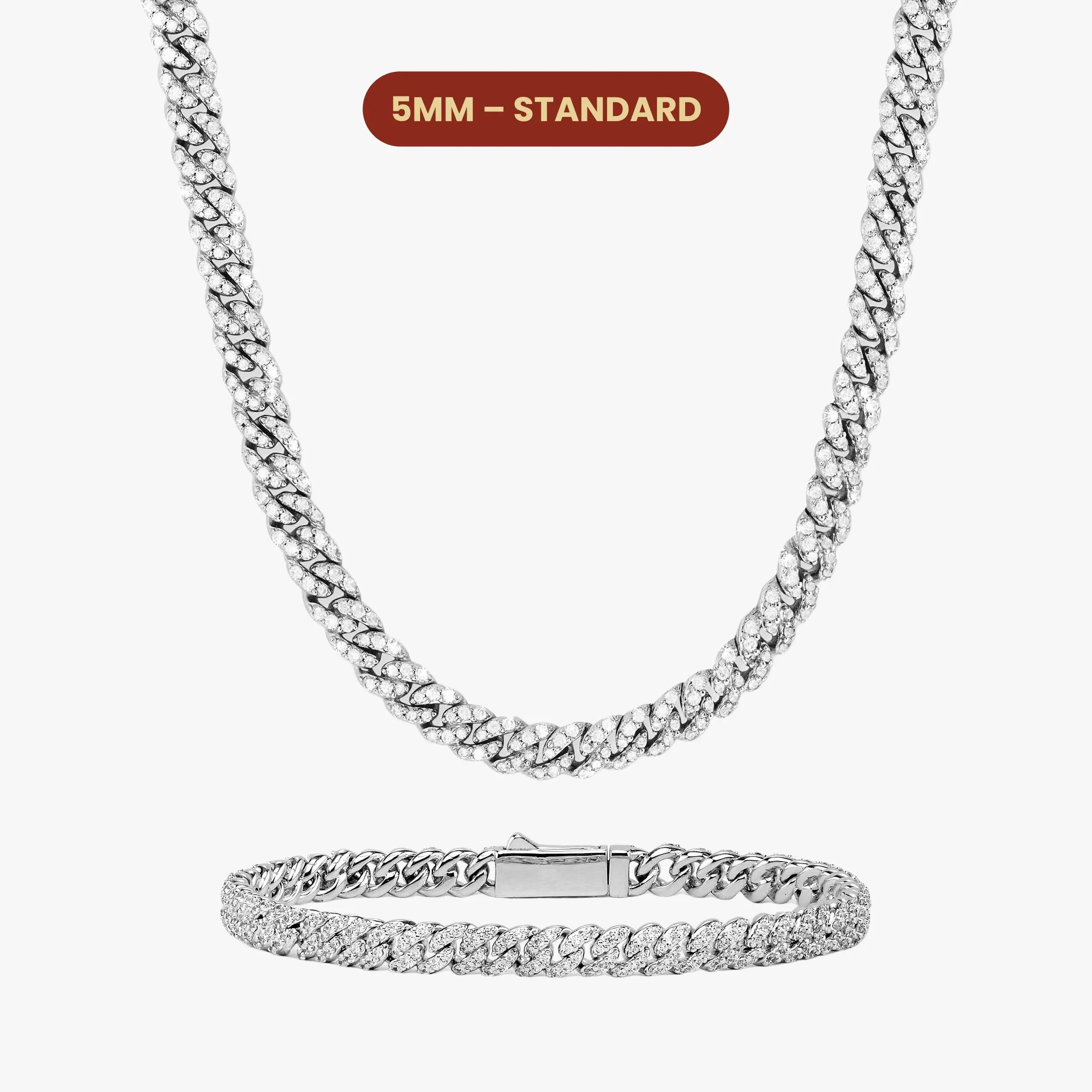 JAXXON Iced Out Cuban Set 5mm - Silver - Rhodium Bonded for Shine & Durability - Box Clasp - Bundle & Save