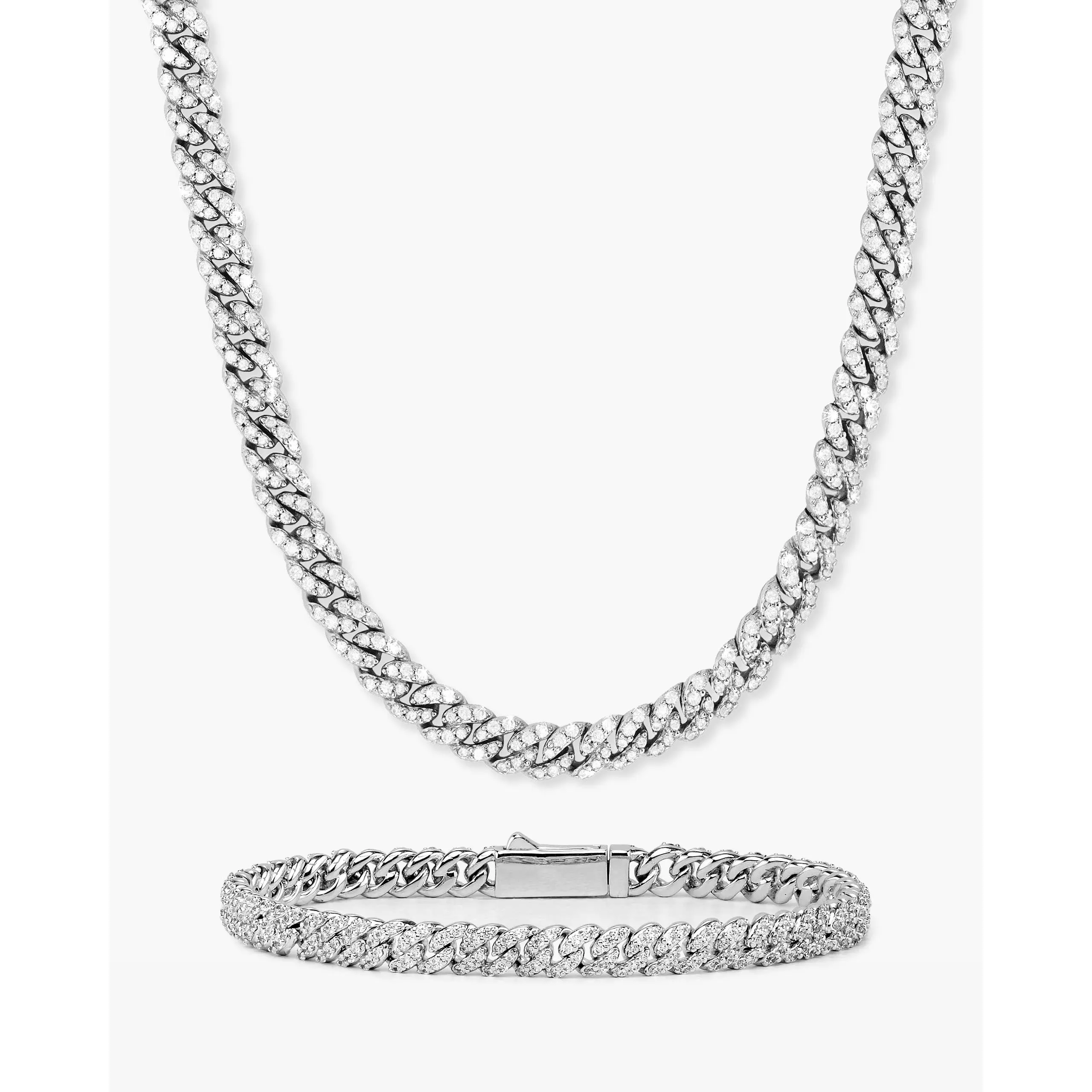 We've reimagined our men's Iced Out Cuban Set with a refined, 5mm gauge for an eye-catching set you can wear everyday or with your most luxurious outfit. Our beautiful, diamond simulants never fail.
