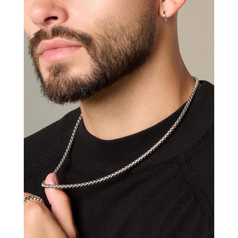 Our new 4mm Box Chain features sleek, square-cut links for a clean, modern look that’s effortlessly versatile. Whether you’re layering or wearing it solo,