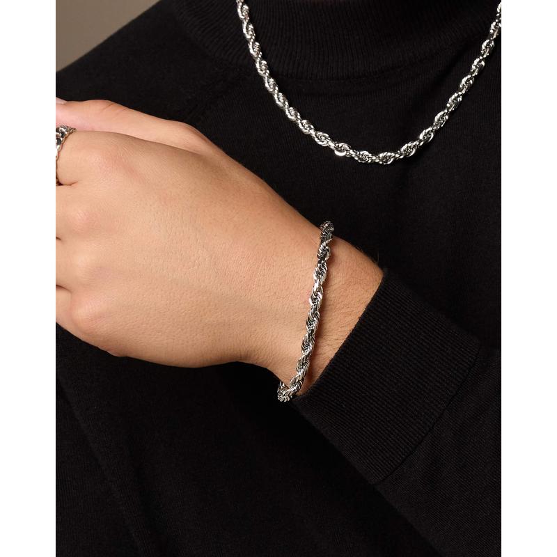 Refined and easy to wear, the silver 5mm Rope Set adds sharp, polished detail to any outfit. Both the chain and bracelet feature our signature engravable box clasp for a sleek, personalized finish. Pair them up for a modern, go-anywhere look that never misses.