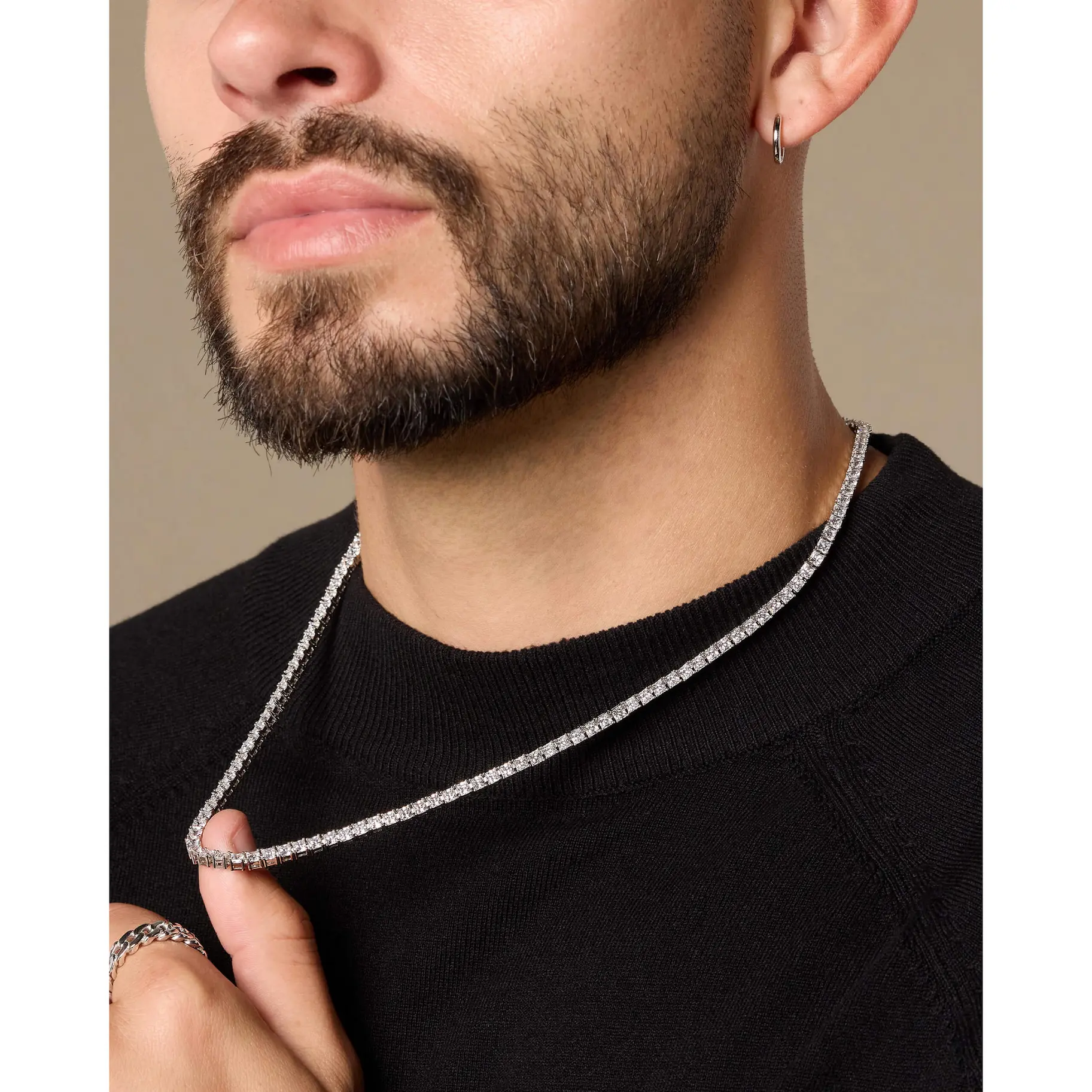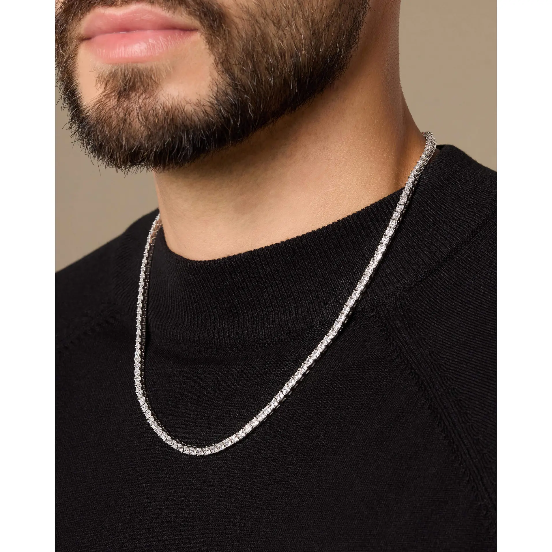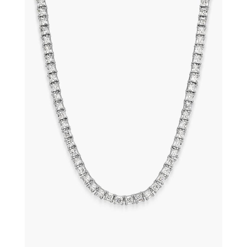 Clean, classic, and crafted for shine — the 3mm silver Tennis Chain brings understated luxury to your everyday look. Its slimmer design offers a fresh take on our signature tennis chain, with hand-set stones that capture light from every angle. Complete the set with the matching 3mm Tennis Bracelet.