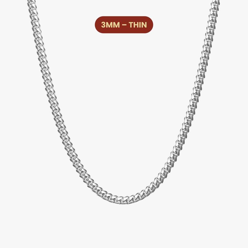 JAXXON Youth Cuban Link Chain 3mm - Silver - Waterproof - Box Clasp