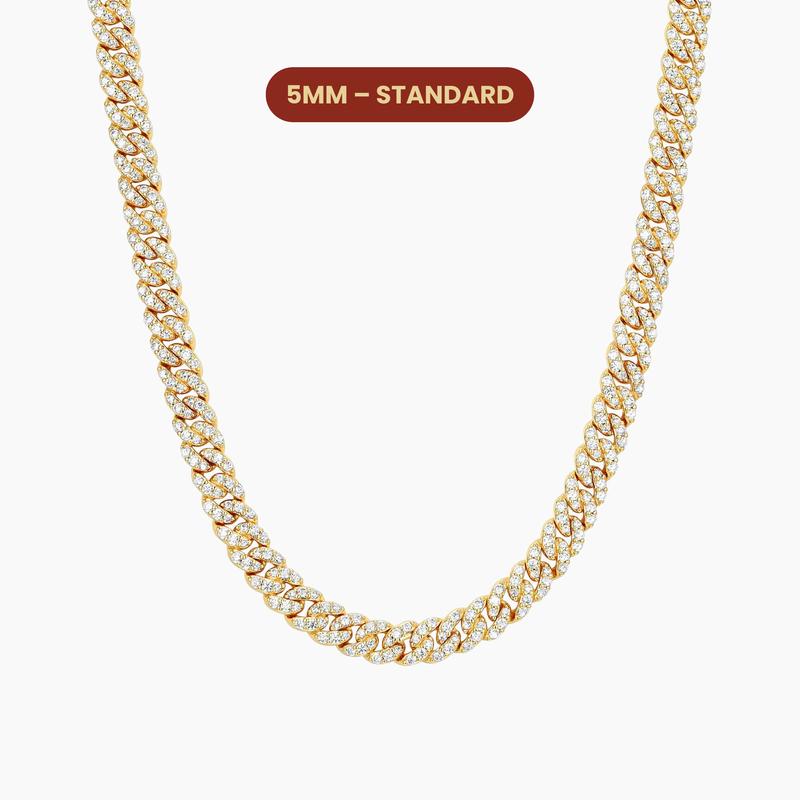 JAXXON Youth Iced Out Cuban Link Chain 5mm - Gold - Diamond Simulants - Box Clasp