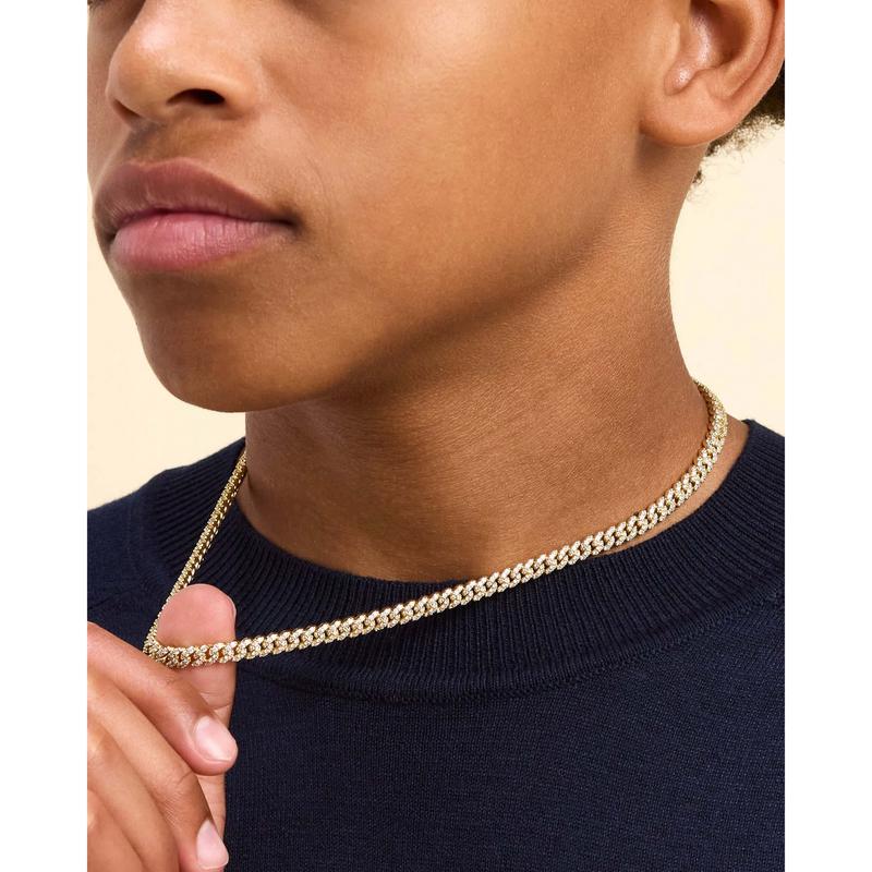 The Youth Iced Out Cuban Link Chain is the ideal accessory for every fashion-forward youth. Its 5mm width and box clasp design ensure a stylish look. The chain's high-quality craftsmanship guarantees lasting shine and durability. Perfect for any stylish young individual, it adds a touch of elegance to any outfit.