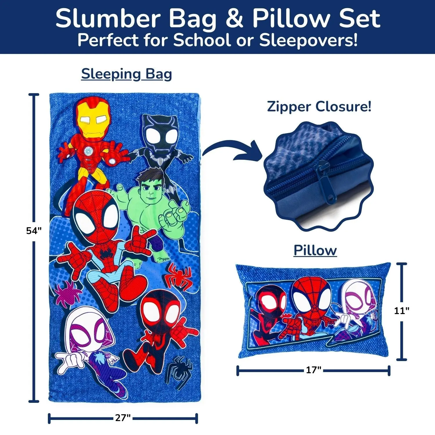 Jay Franco Kids Spidey and His Amazing Friends 2 Piece Set Indoor Sleeping Bag for School and Sleepovers