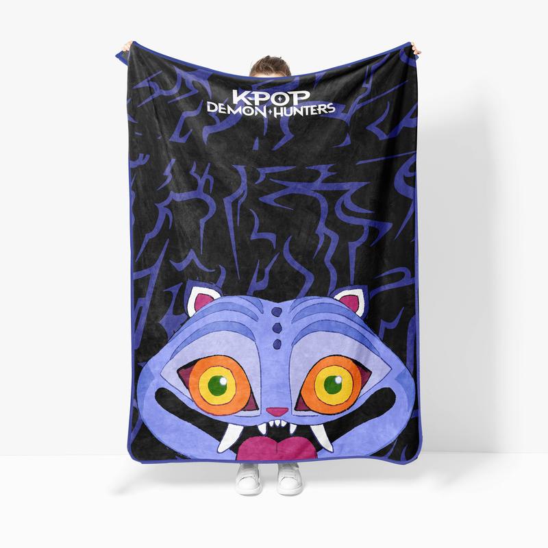 Unleash your fandom with the KPOP Demon Hunters Derpy Monster Throw Blanket, a bold statement piece inspired by the hit animated movie. This design features a dramatic black background with jagged purple streaks and the official KPOP Demon Hunters logo at the top, while a playful Derpy face with oversized orange-and-green eyes, wide ears, and sharp fangs pops from the bottom for a fun, spooky touch. Measuring a generous 60” x 46” and made from ultra-soft microfiber fleece, this throw is perfect for curling up on the couch, layering on a bed, or bringing fandom flair to dorm rooms and travel. Durable, lightweight, and machine washable, it’s the ultimate blend of comfort, style, and KPOP Demon Hunters pride.
