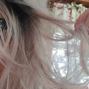 Immediately knew I was cutting the tag off this one. The color is very unique - cool pinkish base with golden lowlights and a dark blonde root. She fits me snug at 21.5” with a wig grip. Soft fibers and gorgeous cut. It’s a hard front so I did have to tweak it a bit with heat. Outdoor/indoor pics.