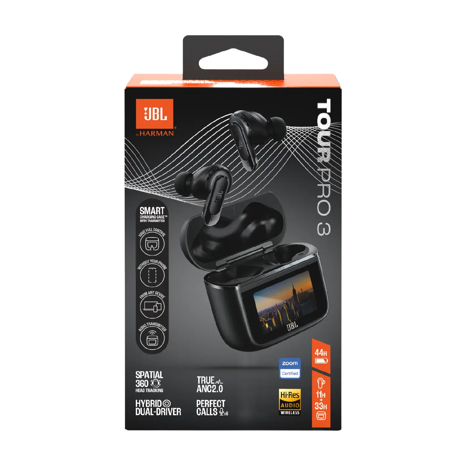 ·Attached image: Shows the JBL Tour Pro 3 earbuds and Smart Charging Case™.
