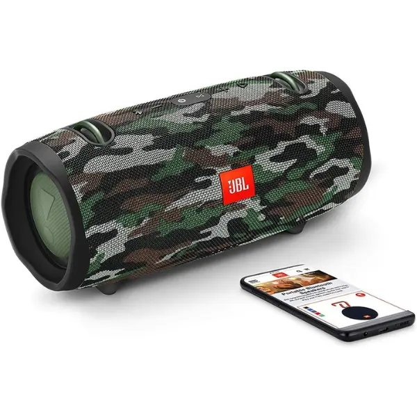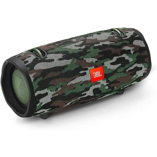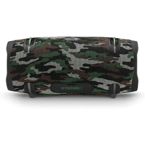 The JBL XTREME 2 is a portable Bluetooth speaker with a camo design. It features a 3000mAh battery, ensuring long-lasting power. This wireless audio device offers loud sound for an immersive listening experience. Perfect for on-the-go use, it is waterproof, making it suitable for various environments.