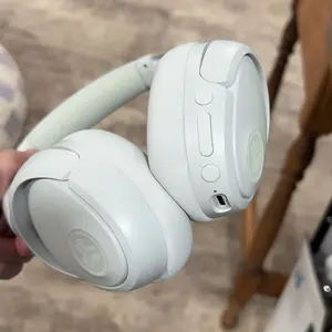 These headphones are great! The noise canceling is insane. We can’t hear hardly anything, especially when music is playing even at a low volume. I wish they were more bright white than an off-white gray, but they’re still really nice. The material feels a little cheap but they seem decent quality for the price. Haven’t gotten to hear the earbuds for an extended period but they’re similar to Raycon earbuds.