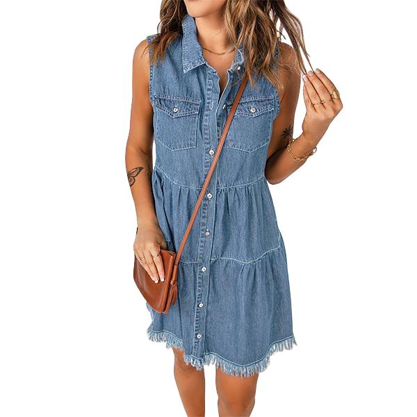 Casual summer dresses for mature women feature a relaxed fit, women jean dress with pleated tiered details creates a sweet and stylish look.