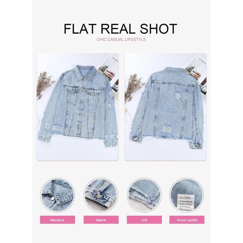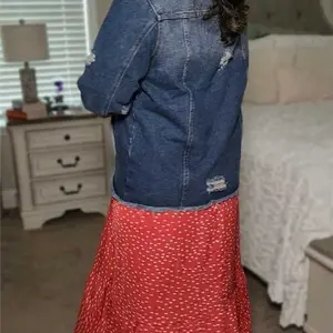 I am obsessed with this lightweight jean jacket by EVALESS. My only complaint is that I wish I had of sized up one size to an XL instead of my true to size L. I love all of the distressing along the sleeves and back of jacket. It has a nice raw hem along the bottom. Perfect transition piece that I can still wear my summer tops into the fall. 5/5 stars!