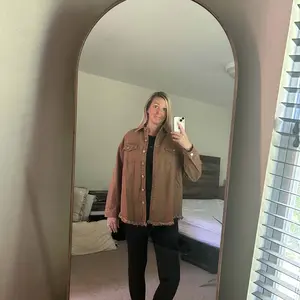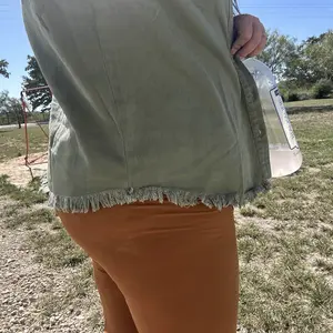 Absolutely love this viral green shacket! Has a fun frayed edging along the bottom hem! Functional buttons! Perfect for the Fall weather! Not scratchy! Easy to wear! Perfectly oversized! I am a medium and this fits great! Plenty of room for layers!