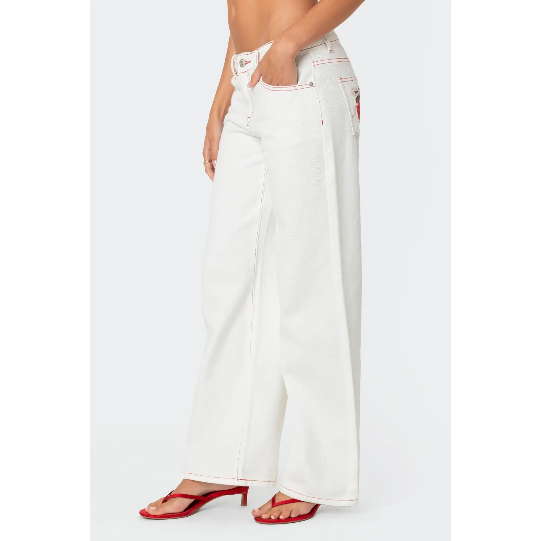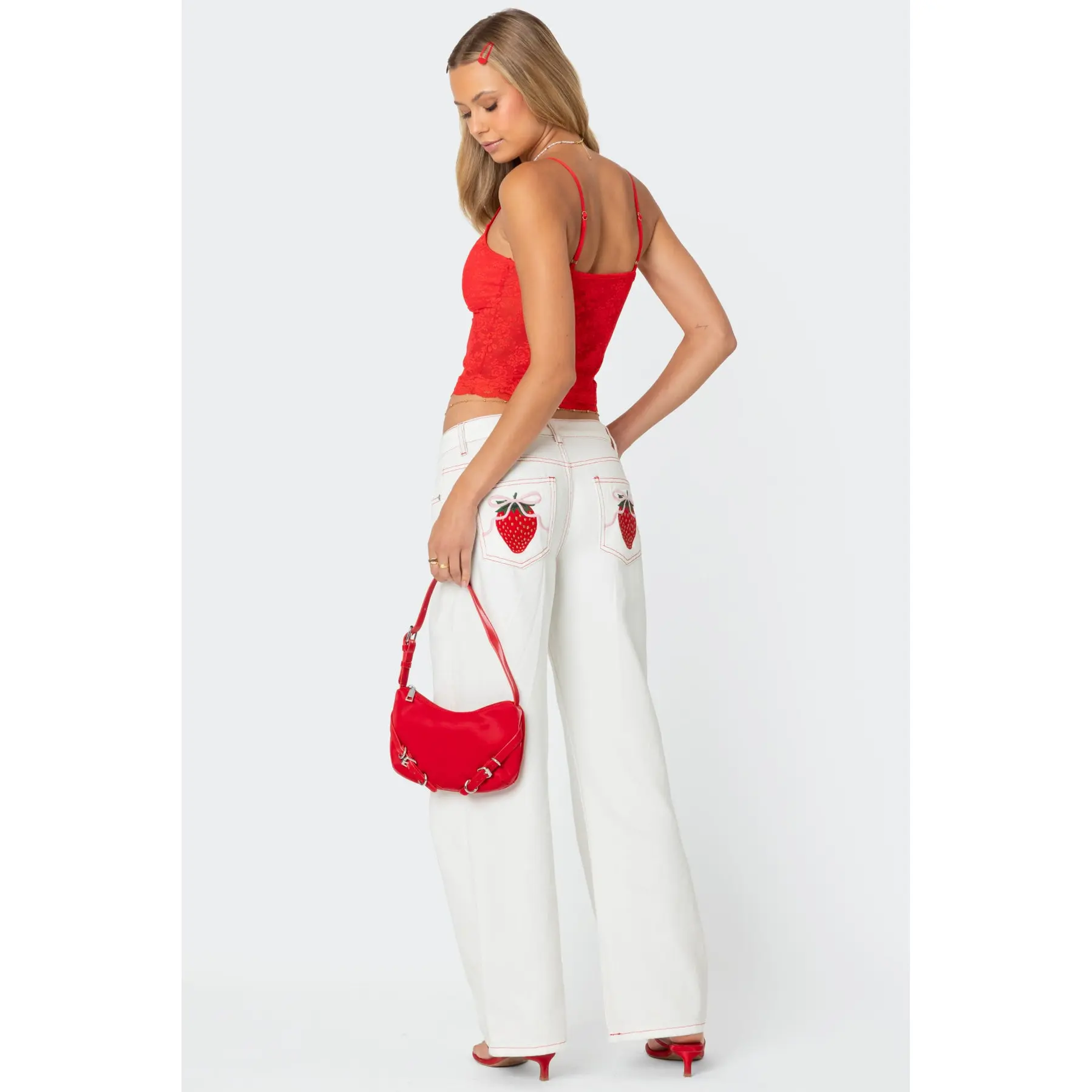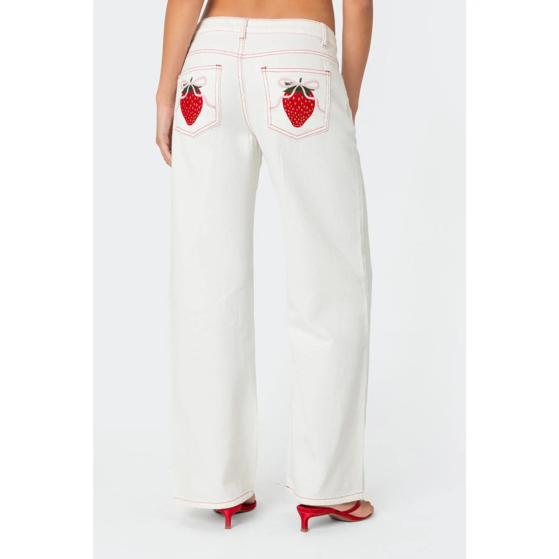 Strawberry Bow Pocket Low Rise Baggy Jeans