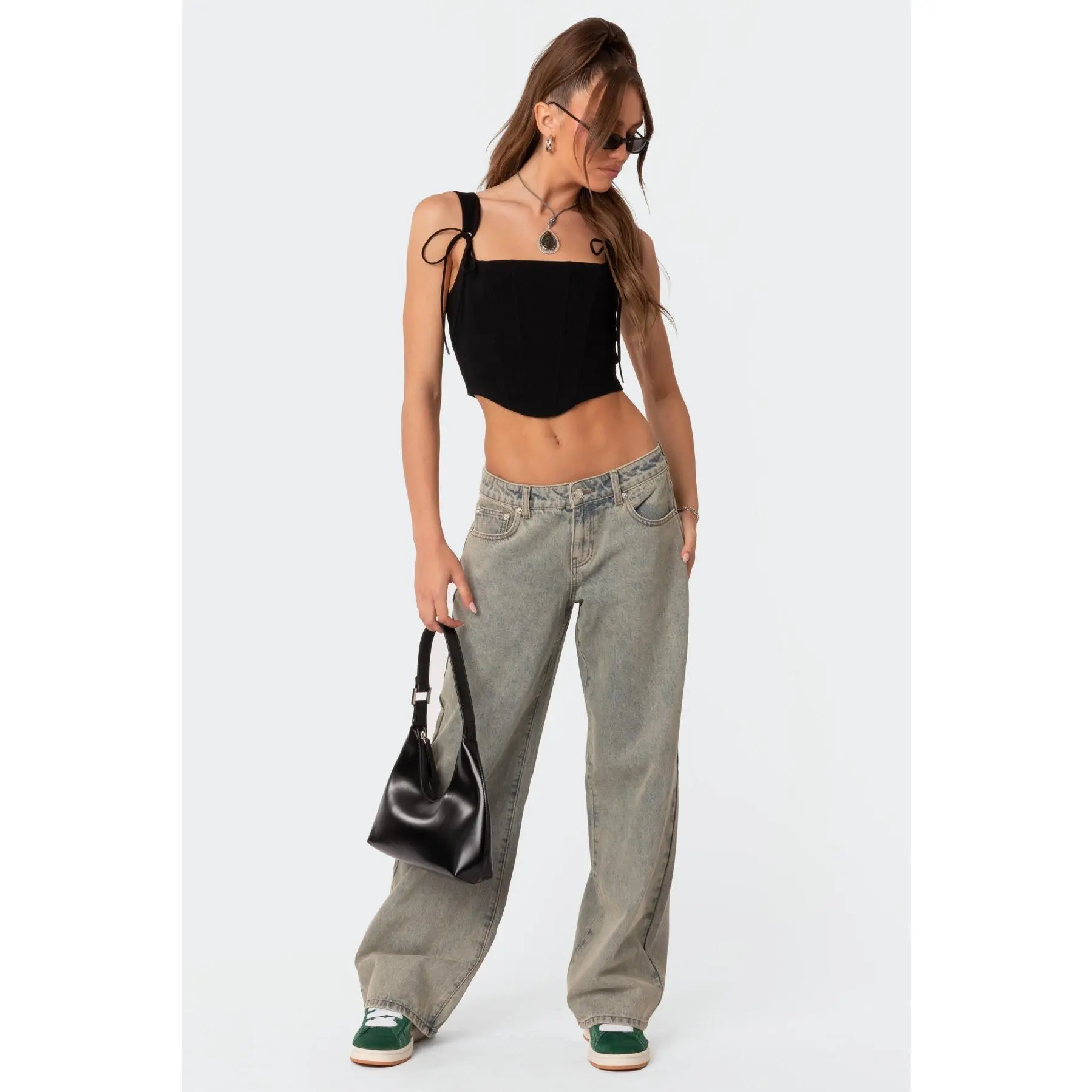 ok i love the color sm and the length is perfect for someone 5’2, bc its baggy but not dragging on the floor when i have shoes on. i have to exchange it for a small tho cus the crotch is unbreathable, and the waist is js slightly tight (im 24-25 inch) 🥲 and also its def mid rise
