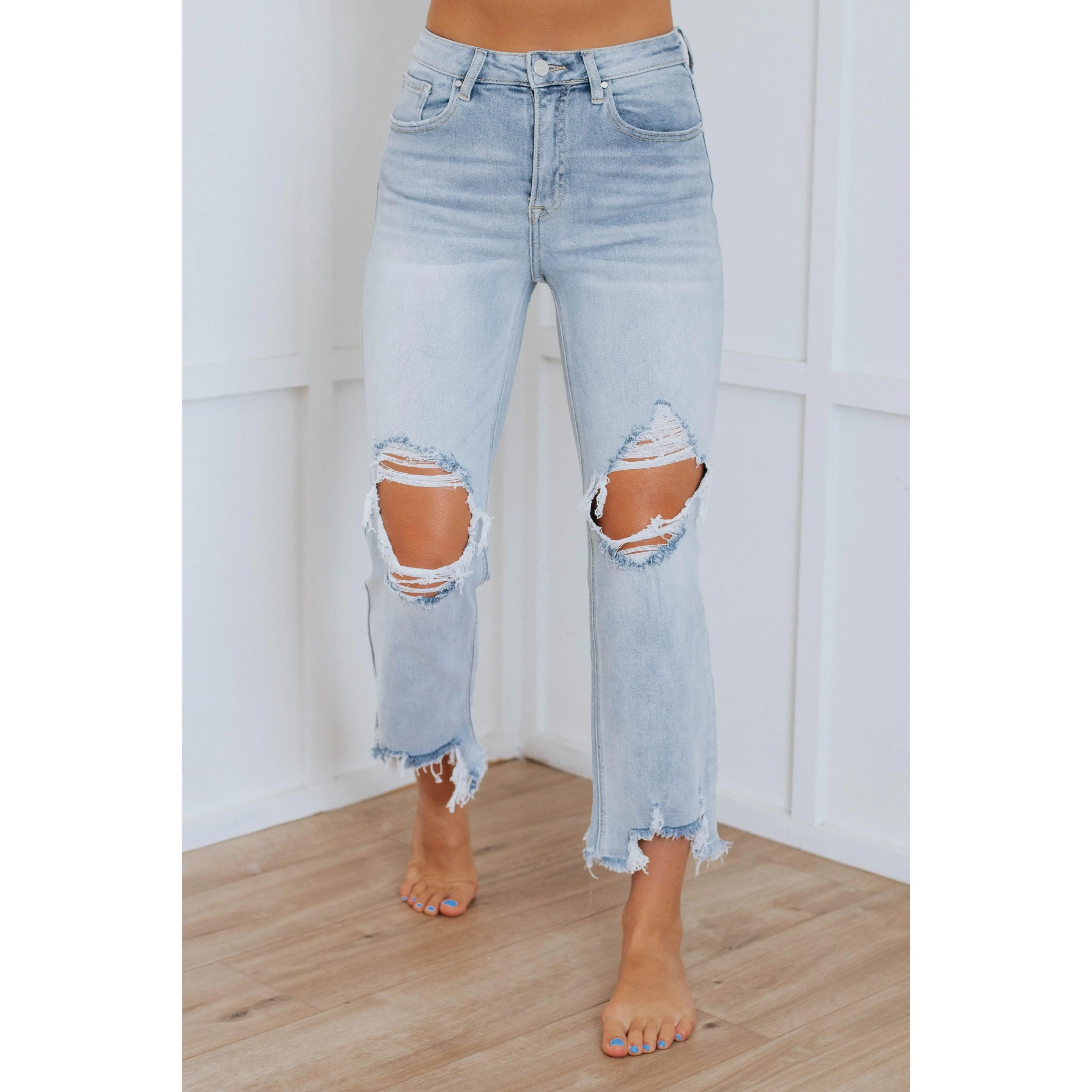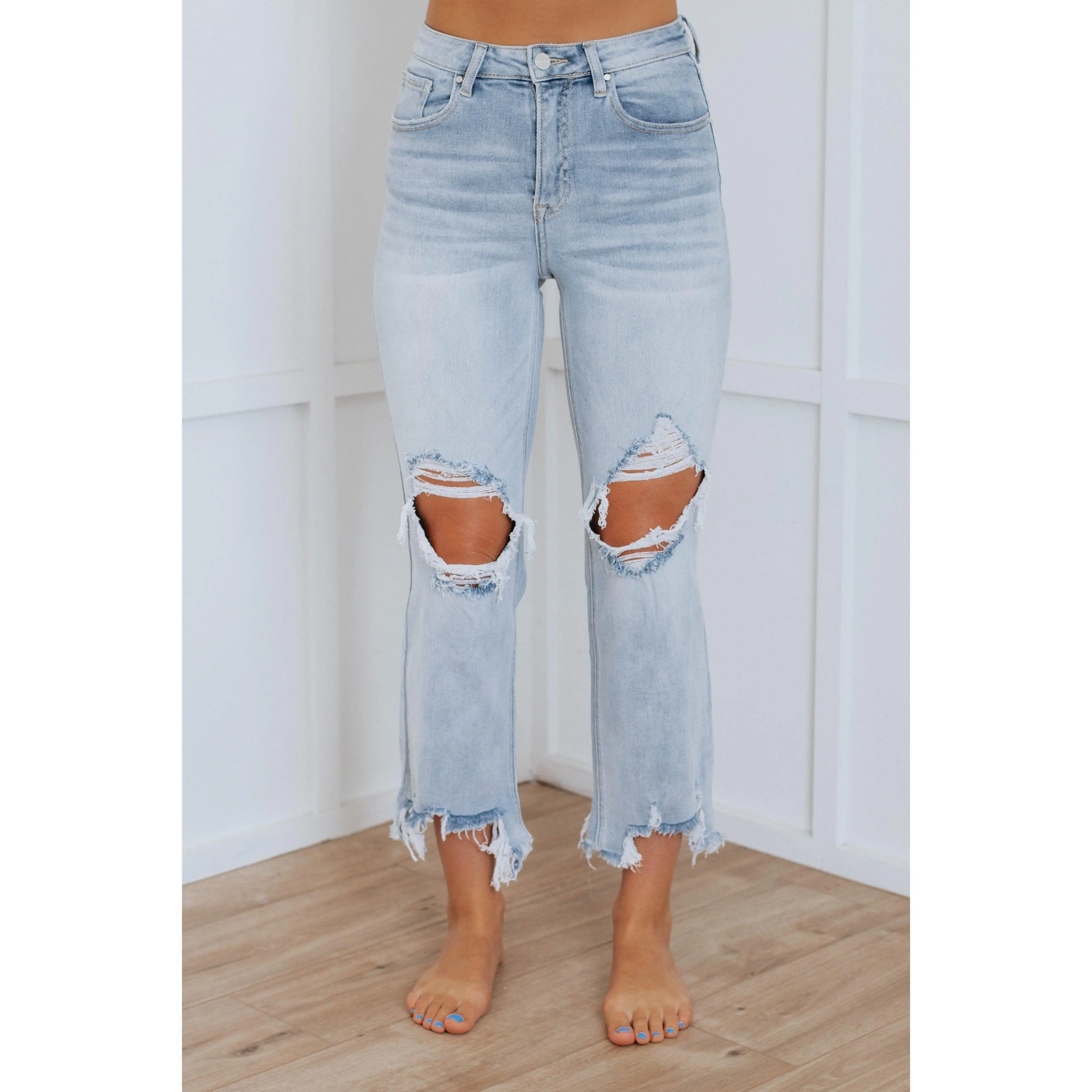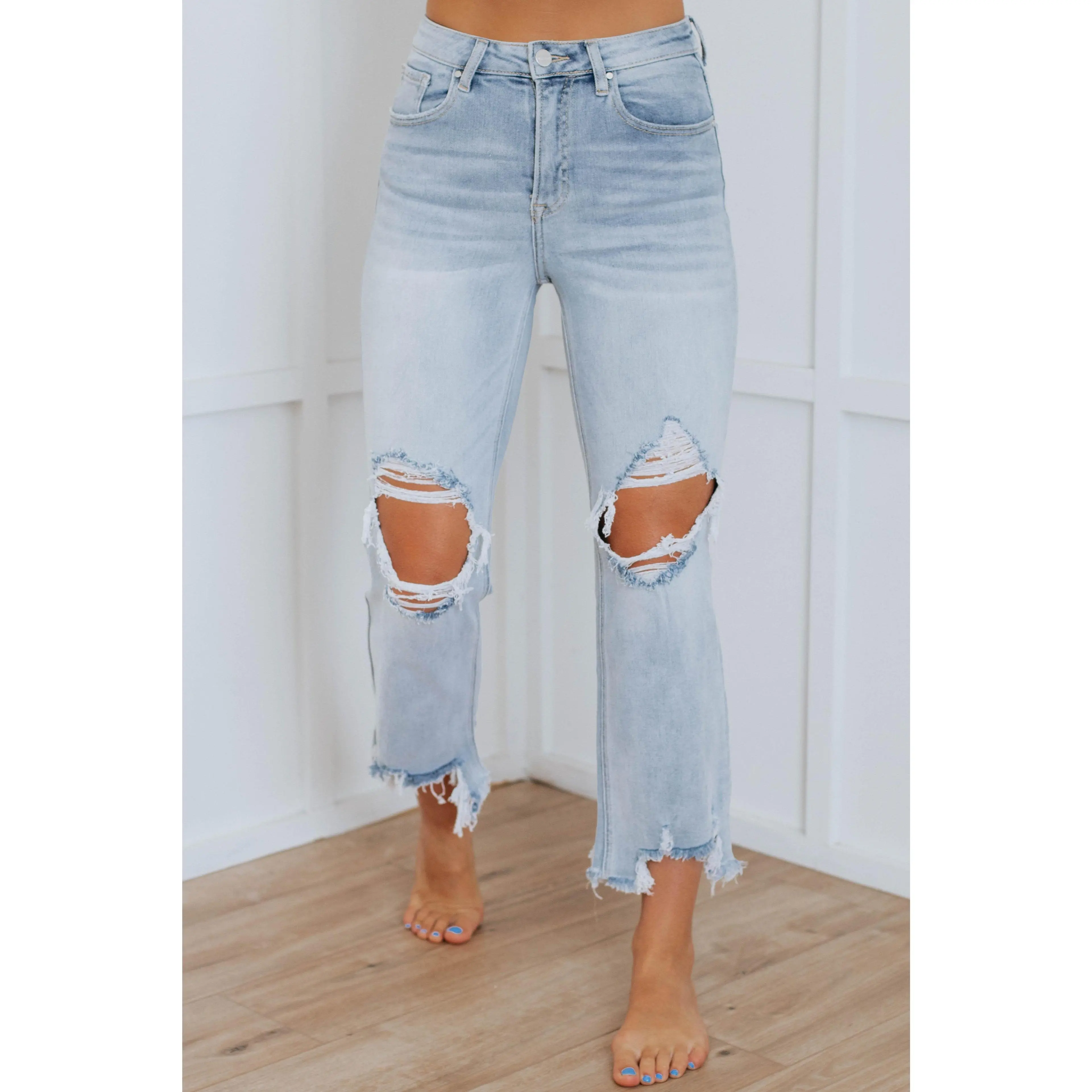 I love these jeans. Good stretch and amazing fit. Love the holes are only on the knees. Great length