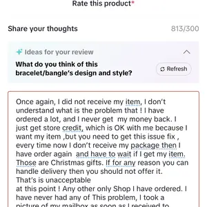 Once again, I did not receive my item, I don’t understand what is the problem that ! I have ordered a lot, and I never get my money back. I just get store credit, which is OK with me because I want my item ,but you need to get this issue fix , every time now I don’t receive my package