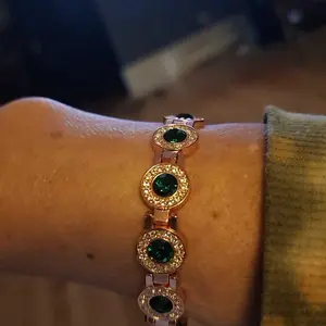 The bracelet is really pretty has some weight to it! Easy to adjust to your size and has great benefits !
