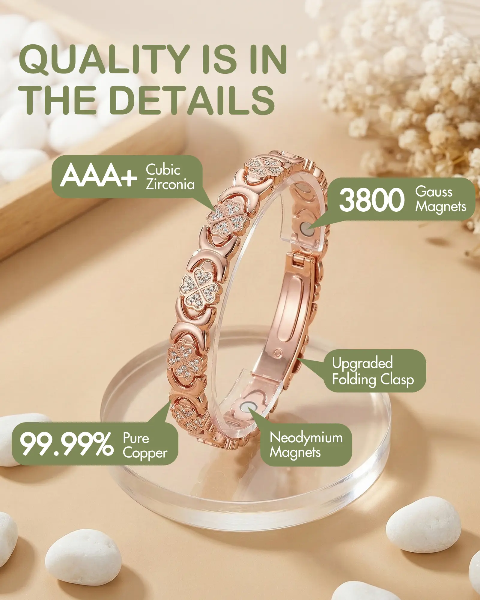 ✨ 3500 Gauss Magnets: Equipped with effective 3500 Gauss magnets, this bracelet offers a strong magnetic pull. 🌟