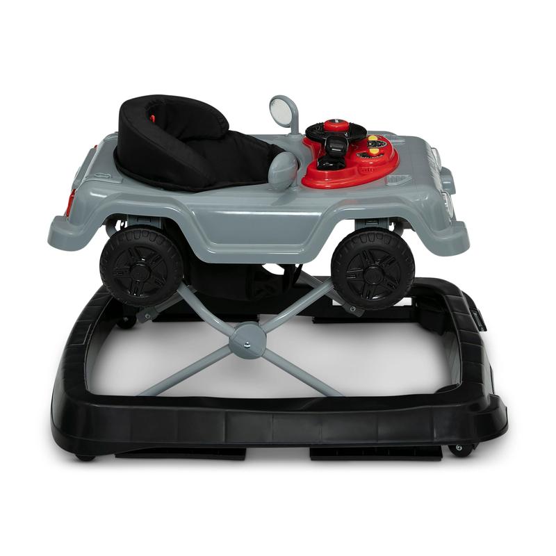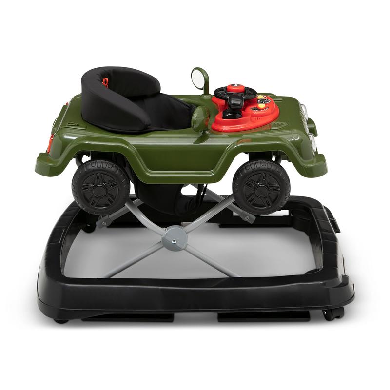 The Jeep Wrangler Activity Walker by Delta Children is built for budding explorers. The walker is designed to resemble the iconic Jeep Wrangler, and showcases the cars legendary features, like its seven-slot grille, round headlamps and flat fender flares. Extremely versatile, this walker adapts to all your child's walking and playing needs. The removable toy tray features tons of interactive features that encourage imaginative play, including a steering wheel that turns left to right, realistic horn and engine sounds, plus turn signals that light up. The authentic sounds and lights encourage fine and gross motor skills. The adjustable height seat allows the walker to easily grow alongside your child. A must-have for Jeep fans, the Jeep Wrangler Activity Walker by Delta Children prepares your child for the road ahead by instilling confidence in their walking ability.