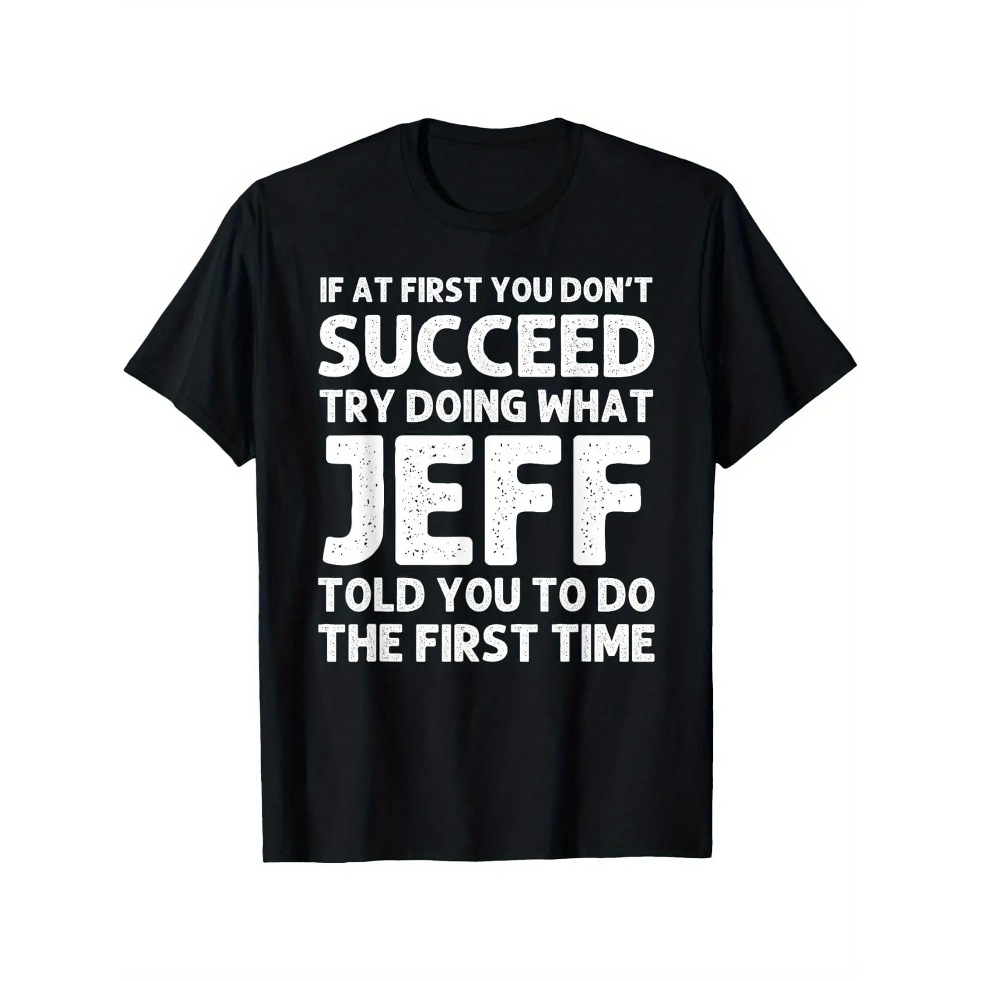 JEFF Men'S Funny Birthday & Christmas T-Shirt - "If at First You Don't Succeed, Try Doing What Jeff Told You to Do the First Time" - Black Casual Short Sleeve Tee with White Text, 220gsm Heavyweight Fabric, Regular  double   Vintage Metalcore Graphic