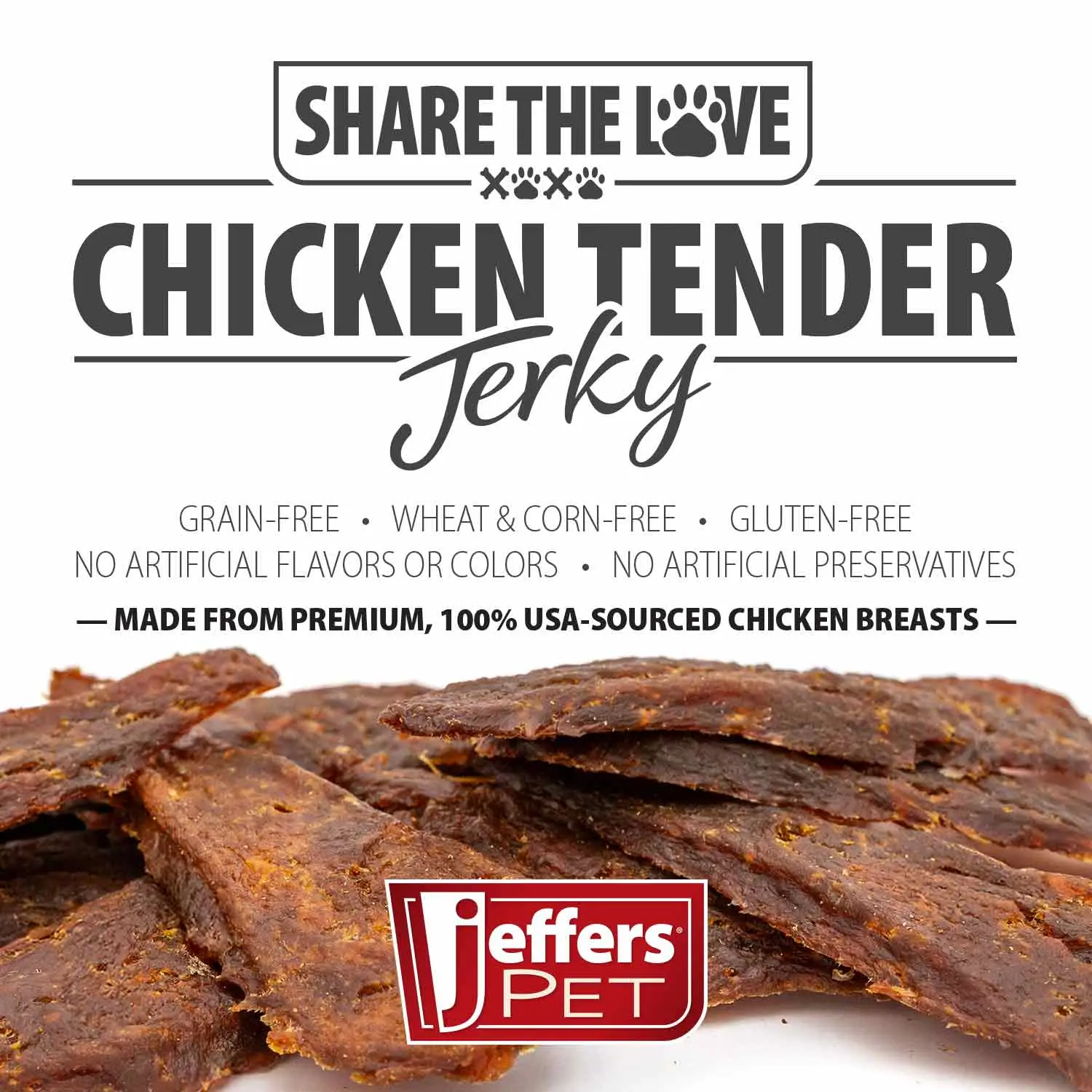 Give your dog a wholesome, flavorful reward with Jeffers Pet Chicken Jerky Dog Treats. Made in the USA from 100% natural, USA-sourced chicken breast fillets, these premium jerky treats are a nutritious, protein-rich option your dog will love. They’re grain-free, wheat-free, corn-free, and gluten-free—making them a safe choice for dogs with common food sensitivities. With no artificial colors or flavors and a low fat content, these treats offer a guilt-free way to show your furry friend some extra love. These soft, tasty treats easily tear into smaller pieces for training and rewarding!