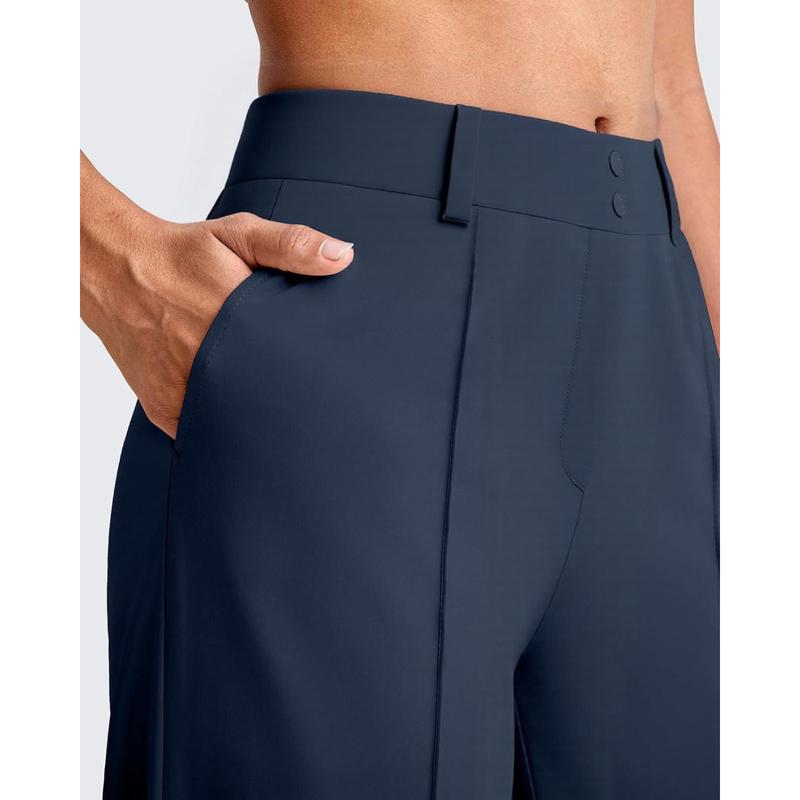 ·Features--These yoga casual business pants feature a high-rise waist, decorative buttons with a faux fly design, lightweight, buttery-soft, and stretchy fabric, a full-length design, and side pockets. This straight-leg pant ensures unrestricted movement and comfort at both hips and waist. The material is 80% Polyester, 20% Spandex.