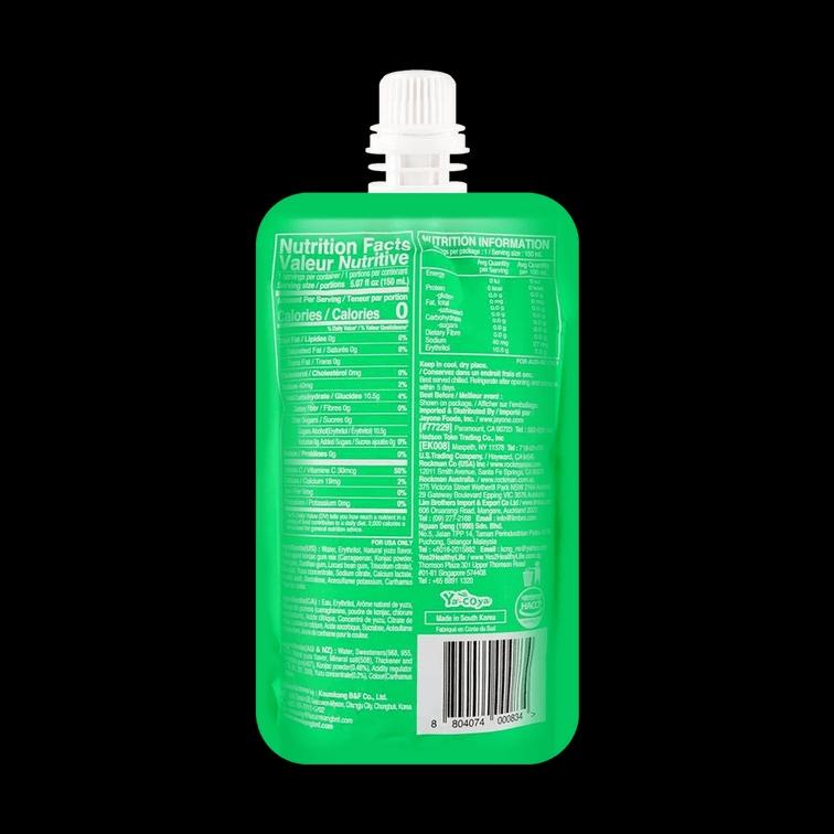 IngredientsWater, Erythritol (a sweetener), a Konjac gum mix (which includes carrageenan, konjac powder, gellan gum, xanthan gum, locust bean gum, and trisodium citrate), Citric acid and Sodium citrate (acidity regulators), Natural Yuzu Flavor, Yuzu extract, Calcium lactate, Ascorbic acid (vitamin C), Sucralose and Acesulfame Potassium (sweeteners), and Carotene for color.