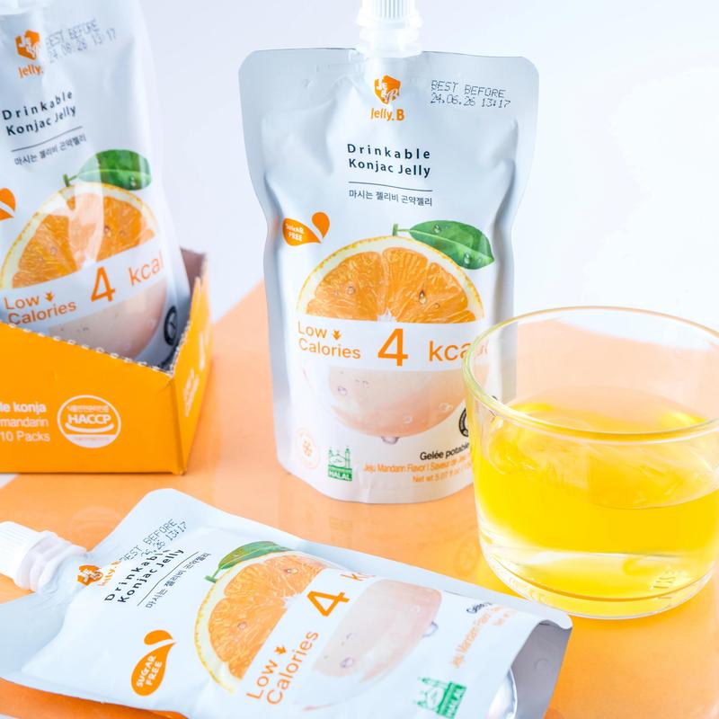 Satisfy your cravings the healthy way with Jelly.B's Korean Konjac Jelly Drink! 🍊