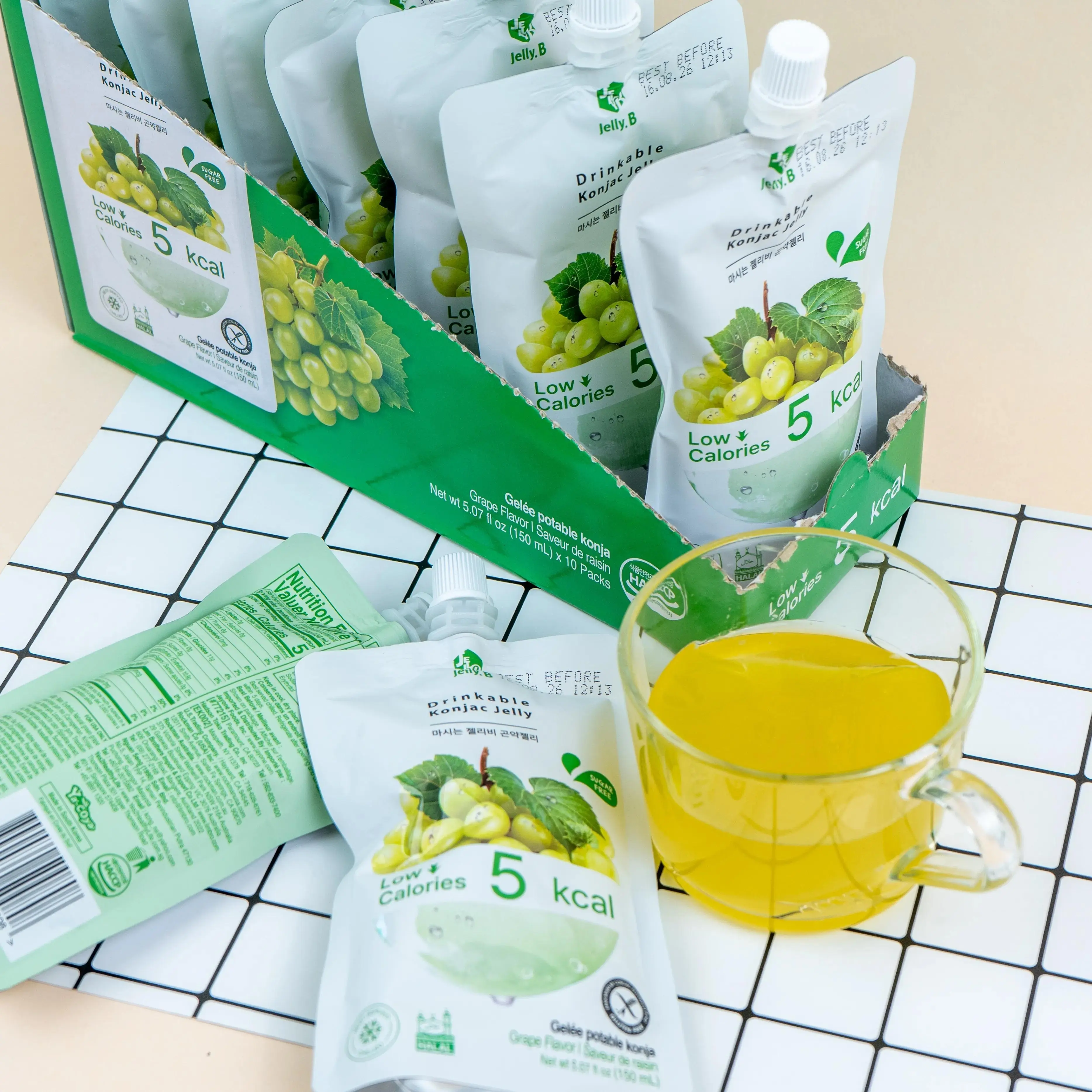 Satisfy your cravings the healthy way with Jelly.B Korean Konjac Jelly Drinks! 🍇 Bursting with delicious grape flavor, these zero-fat, sugar-free jelly pouches are perfect for a guilt-free treat. Each 150ml pouch is packed with konjac goodness, offering a satisfying texture that helps you feel full longer. 😋