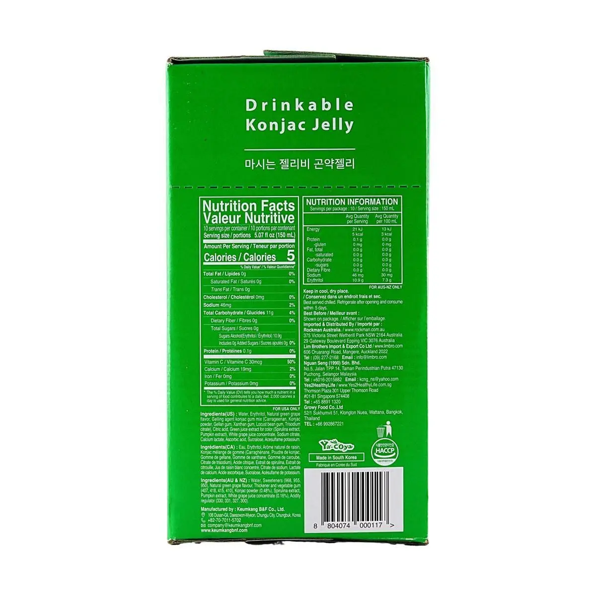 Enjoy a super value pack of 10 pouches, with only 5Kcal per serving! These konjac jelly drinks are made with a sugar substitute, making them a fantastic choice for those watching their calorie intake or looking for a healthier snack alternative. ✨