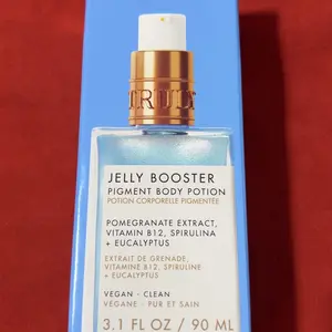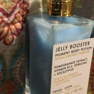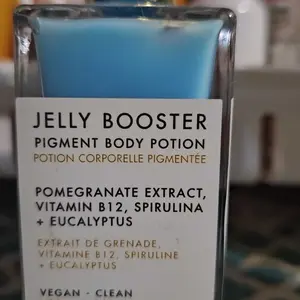 Jelly Booster! Best best best pigment body potion... Ingredient: Pomegranate extract, Vitamin B12, Spirulina+Eucalyptus Product benefit: Dark spot lighter Skin type: All skin types