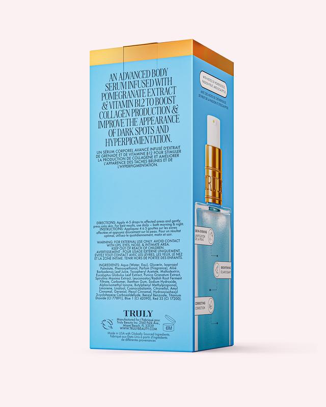 A serum formulated with a soothing blend of pomegranate extract and collagen-maintaining vitamin B2 to target and lighten hyperpigmentation caused by acne scars, trauma to the skin, ingrown hairs, and hormonal changes.