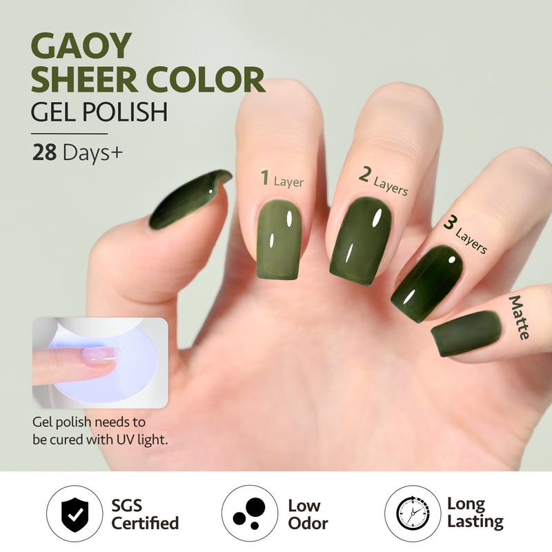 4. GAOY Jelly Gel Nail Polish, 16ml Sheer Green Translucent Soak Off Gel Polish, UV Light Cure for Nail Art DIY
