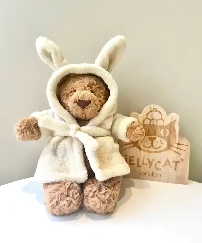 Jellycat Bartholomew Bear Bathrobe Outfit, Adorable Plush Teddy Bear in Cozy Bunny Hooded Robe, Ideal Cuddly Gift for Girls, Boys, Babies & Plush Lovers on Any Holiday, Gift Giving, and Room Decoration, Collectors,