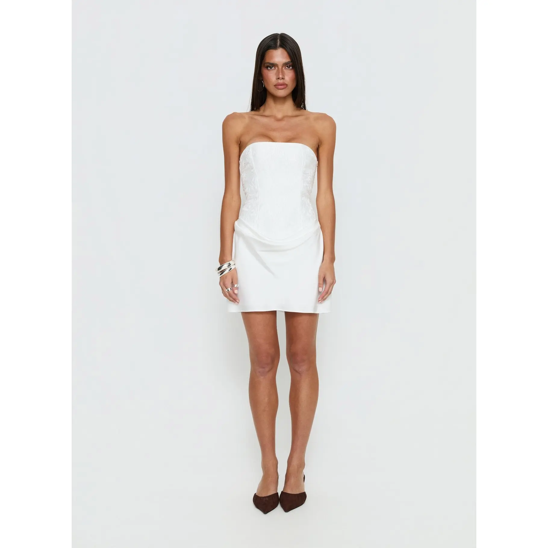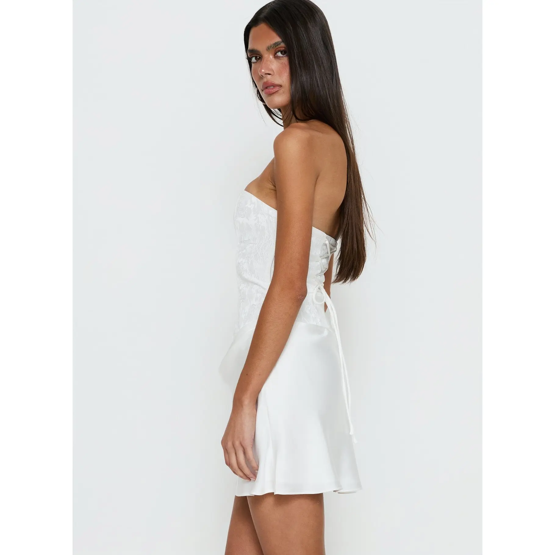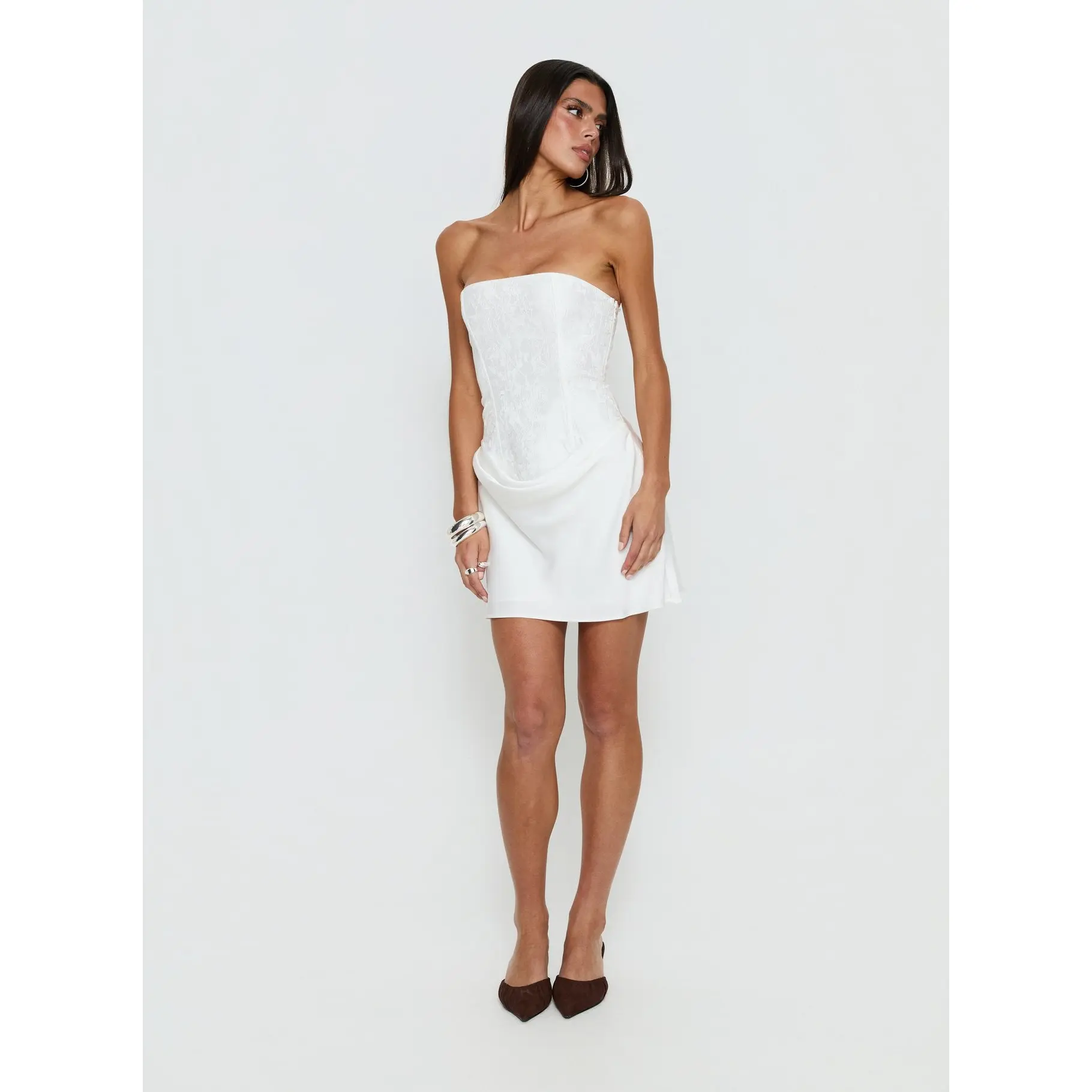 5. Jenevieve Strapless Drape Mini Dress White