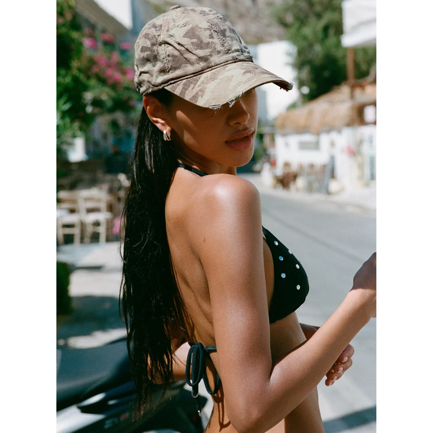 ·Triangle-studded bikini top