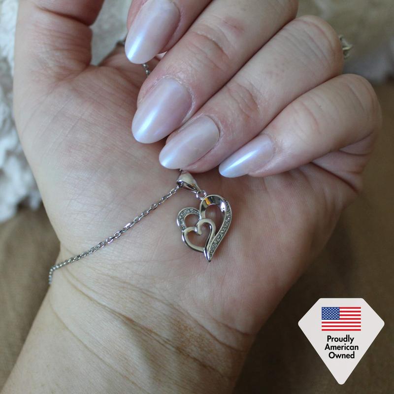 Celebrate love and elegance with the Jennifer 18k White Gold Plated Double Heart Necklace, featuring a delicate double-heart design that symbolizes unending affection. The necklace is adorned with sparkling Simulated Diamond Crystals, adding radiant shimmer and a touch of luxury to every outfit. Crafted from hypoallergenic brass and plated in lustrous 18k white gold, it offers long-lasting shine and comfortable wear. Perfect as a thoughtful gift for birthdays, anniversaries, or special occasions, this necklace is beautifully presented in a Cate & Chloe gift box.