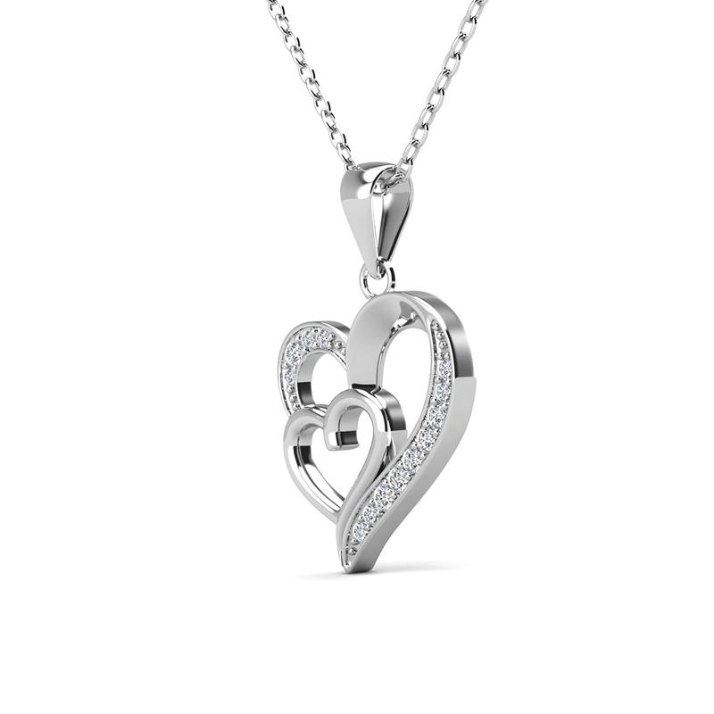 Jennifer 18k White Gold Plated Double Heart Necklace with Simulated Diamond Crystals