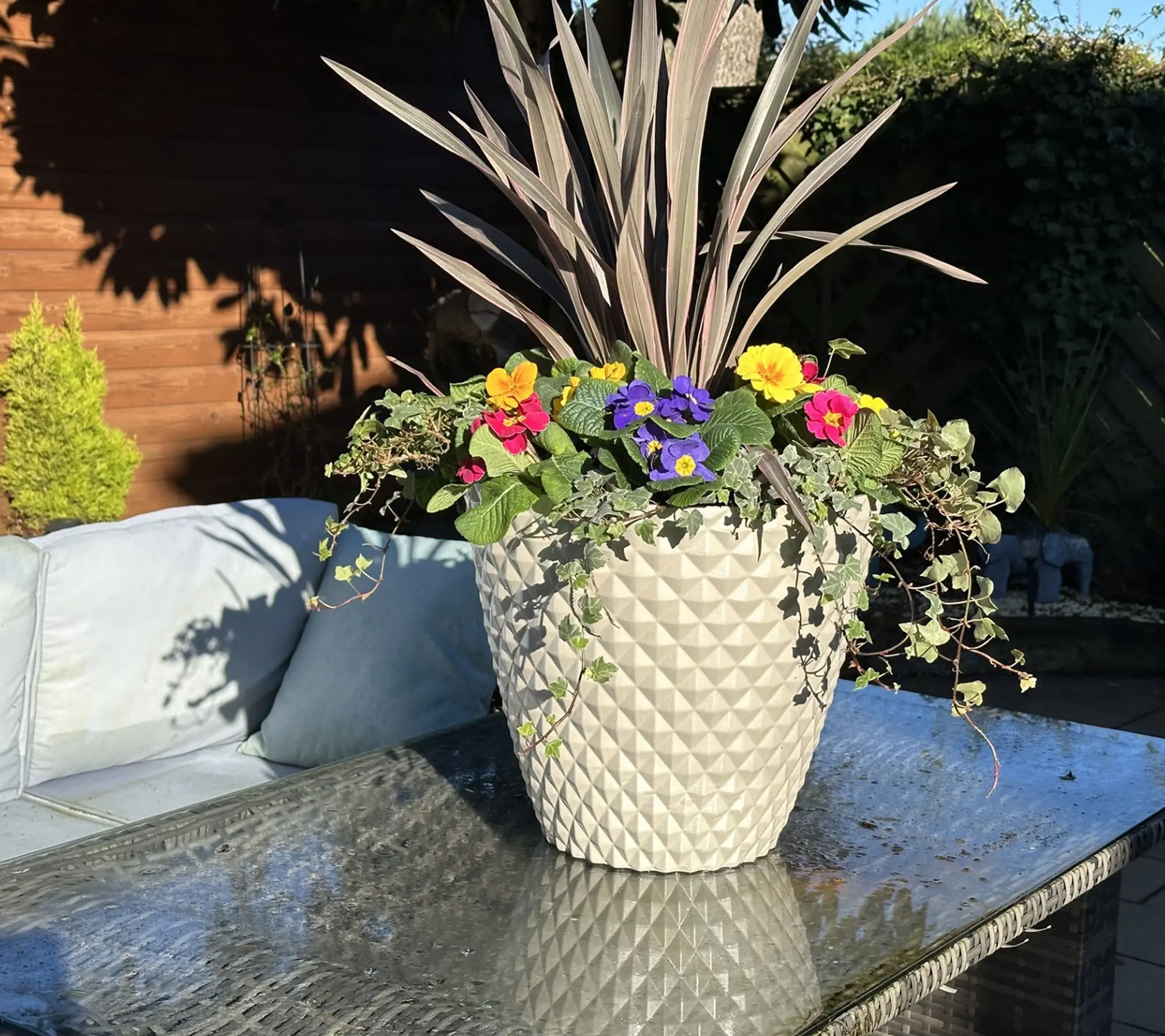 If your patio is begging for a glow-up-start with these XL planters with such a pretty diamond pattern! 15.25” set of 2 of lightweight, durable with drainage holes. 3 color options @QVC, Inc  #PlanterGoals #QVCFinds #OutdoorDecor #GardenRefresh #PlantLovers