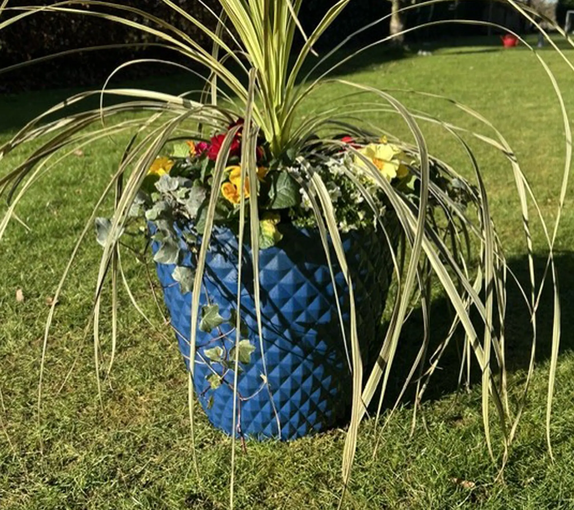 This set of 2 XL Pearlescent Diamond Planters by Jennings are a vibrant and colorful way to plant your flowers. These planters are lightweight so they are easy to move around your outdoors or indoor spaces. Drainage hole allows for excess water to escape to prevent overwatering. Choice of colors. Set of 2. Each planter measures approx 15-1/4" x 13-3/4"H Imported
