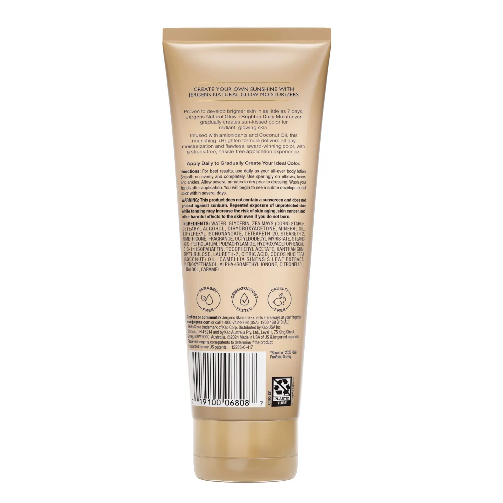 Jergens Natural Glow Self Tanner Body Lotion is the #1 dermatologist-recommended sunless tanner brand. It creates a flawless, natural-looking color, perfect for before or after the beach. This daily moisturizer is infused with coconut oil, Vitamin E, and antioxidants. It boosts moisturization and is paraben-free and cruelty-free.