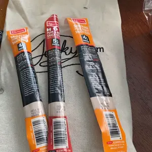Regular beef snack stick was mushy. The rest of the sticks were alright but each is like 70-100 calories a stick. Exclusive-wacky teriyaki was delicious with a hint of sweetness medium texture.weird og-slightly spicy with medium texture pepper luv-very oily/fatty with hint of pepper. Too greasy