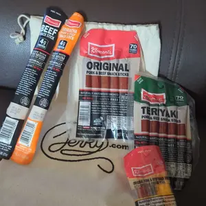 Great variety of beef sticks plus a free bag of HoneyTeriyaki jerky at a great price! Just in time to stuff the stockings! I may have eaten two of the beef and cheese snacks already š