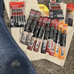 Great variety of beef sticks plus a free bag of HoneyTeriyaki jerky at a great price! Just in time to stuff the stockings! I may have eaten two of the beef and cheese snacks already 😅